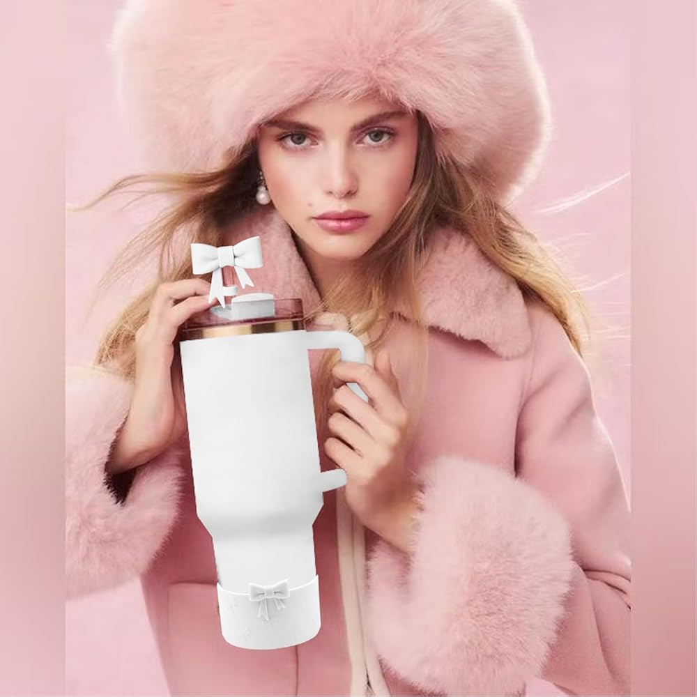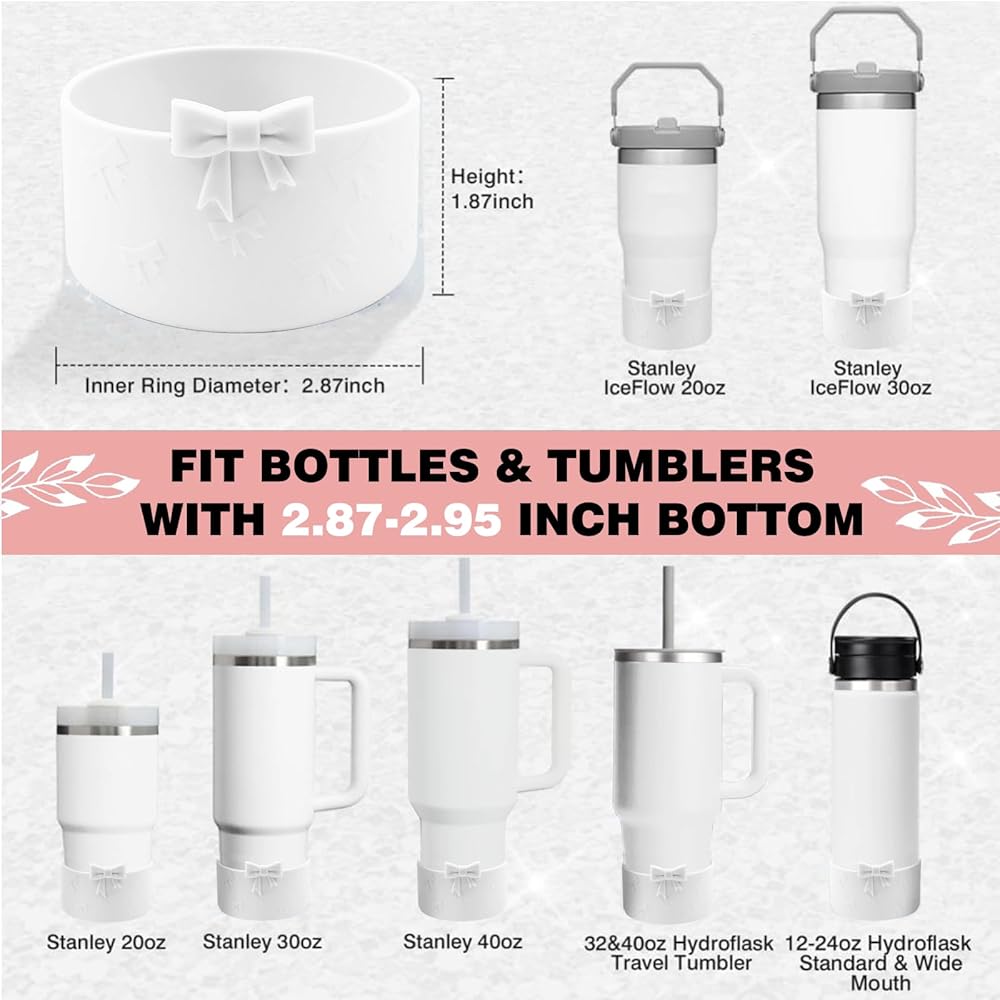Hpebl Bows Silicone Water Bottle Boot, Stanley Cup Accessories Anti-Slip Protective Sleeve for Water Bottle, Stanley Cup Protector Sleeve Cover Boots for Stanley 40 30 oz with Handle