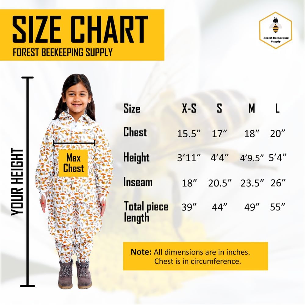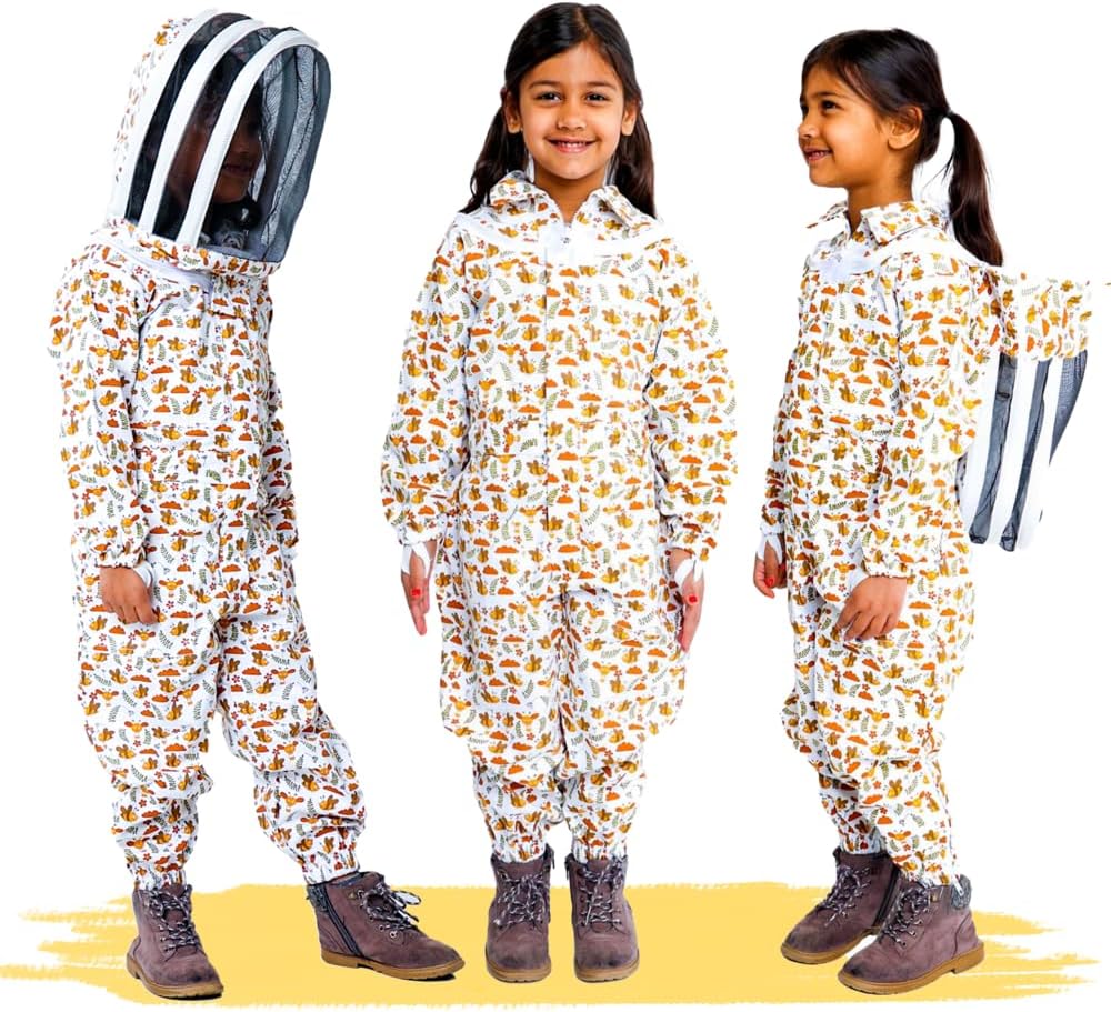 Ventilated Ultra-Light: These deluxe bee keeper costumes for kids are extremely lightweight (1.4 to 1.9 lbs for XS to L Size) approx. Vented kids beekeeping suit allows Children's skin to breathe, thus beekeeping suit child preventing excessive sweating and discomfort!
