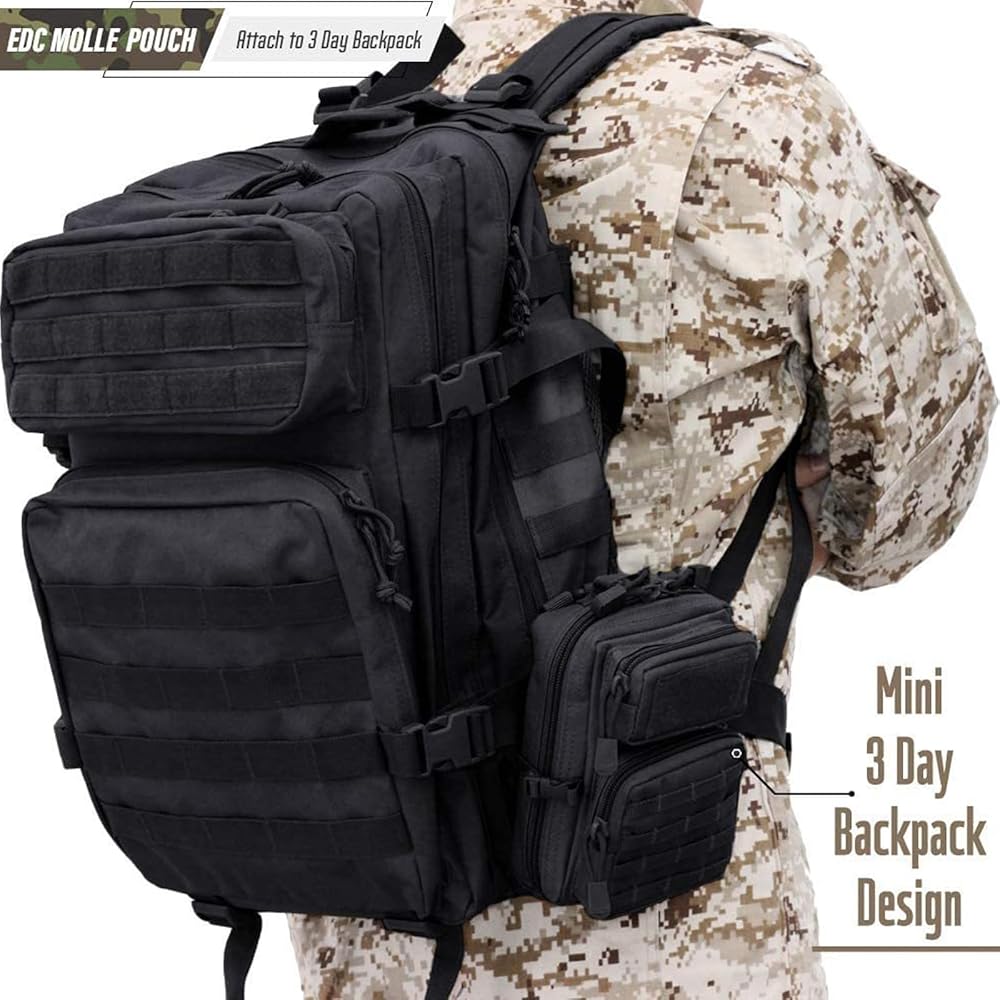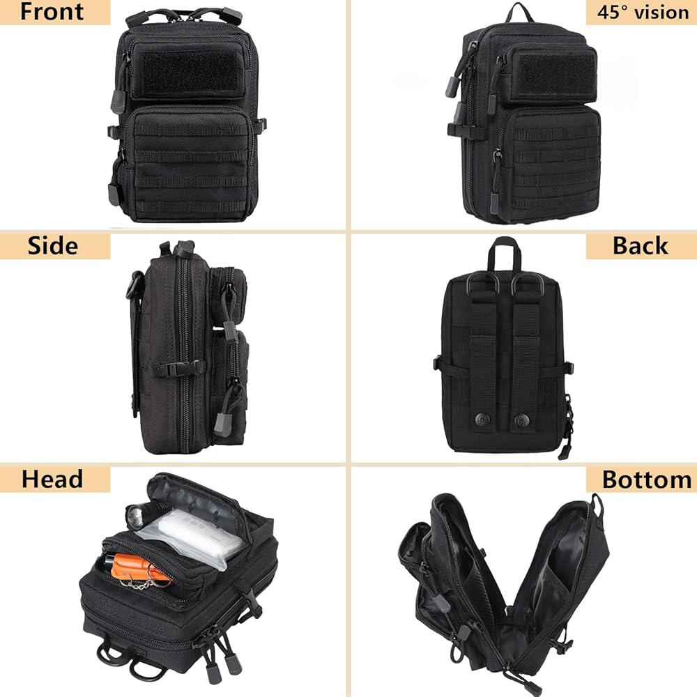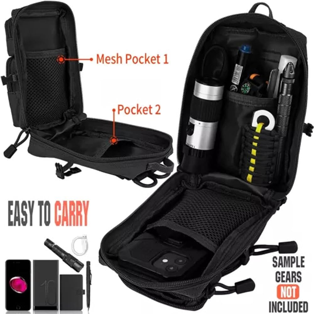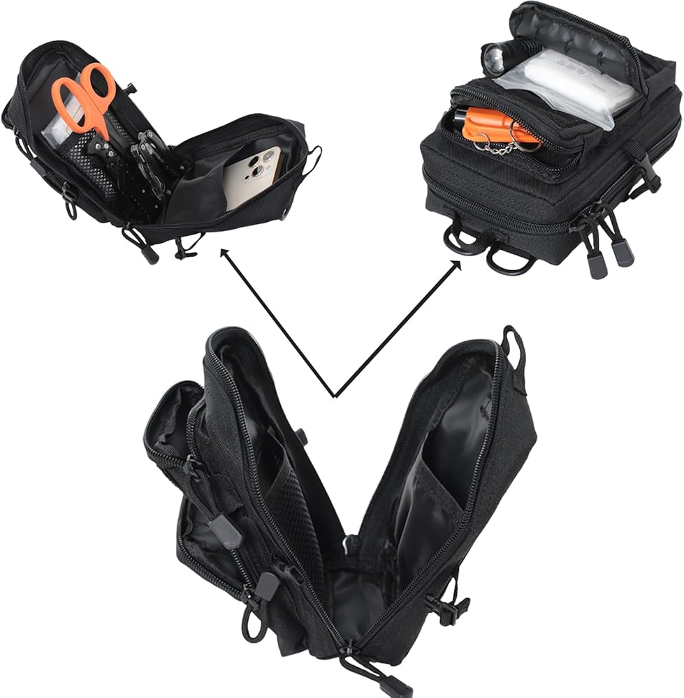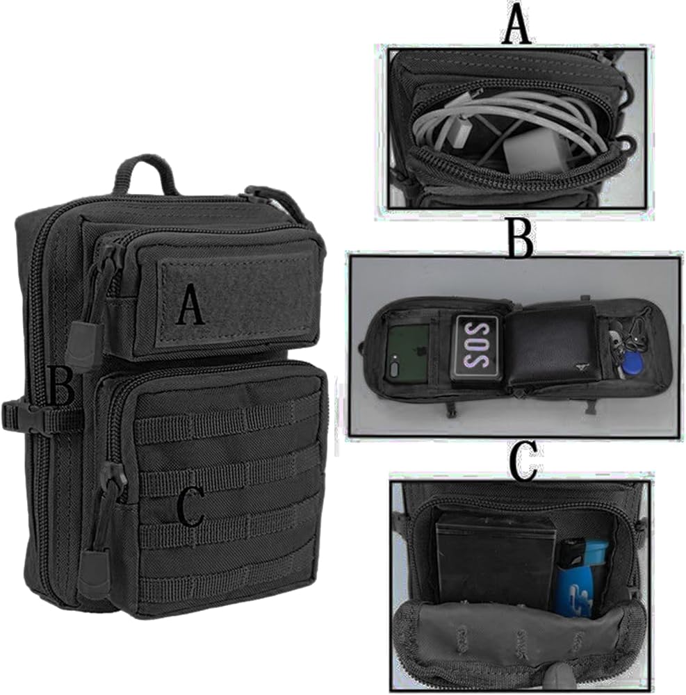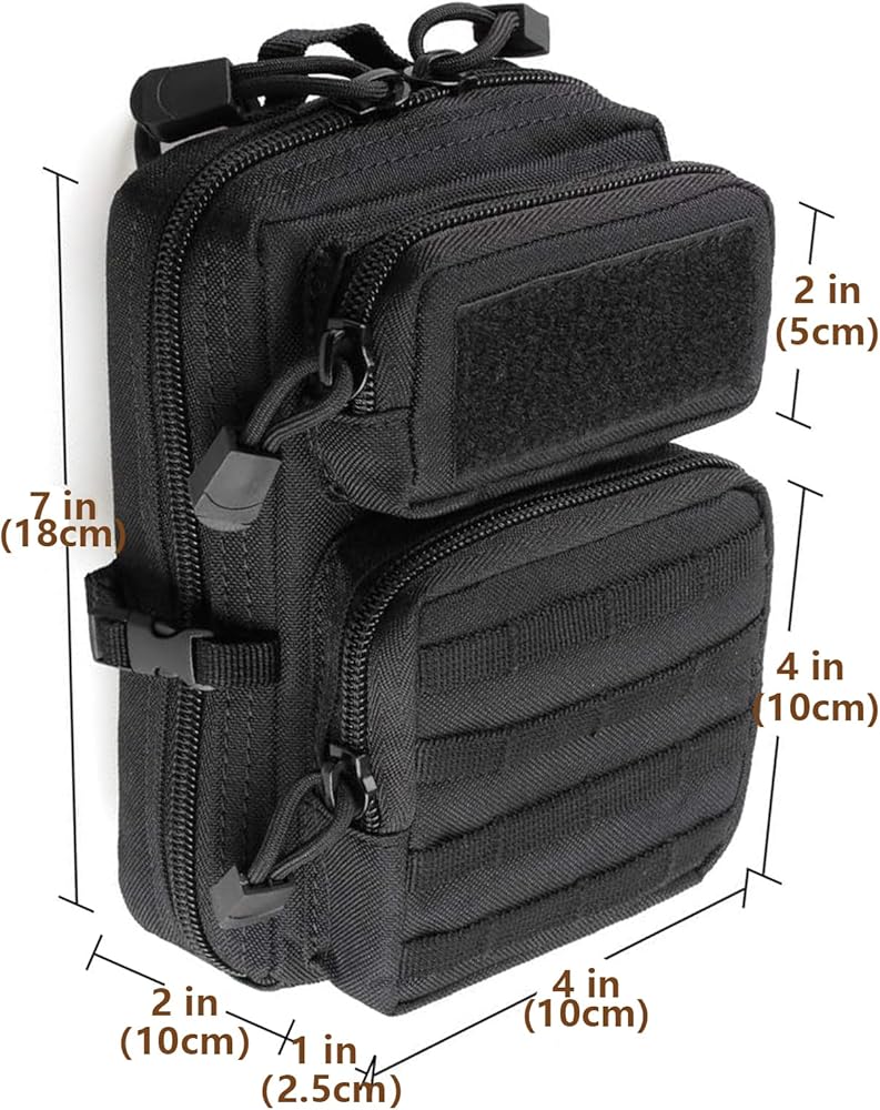 【Large Capacity】Measuring 7" x 7" x 3", the Tactical Multi-Bag has multiple compartments and zippered pockets to provide ample space to meet your various needs and item assortment.