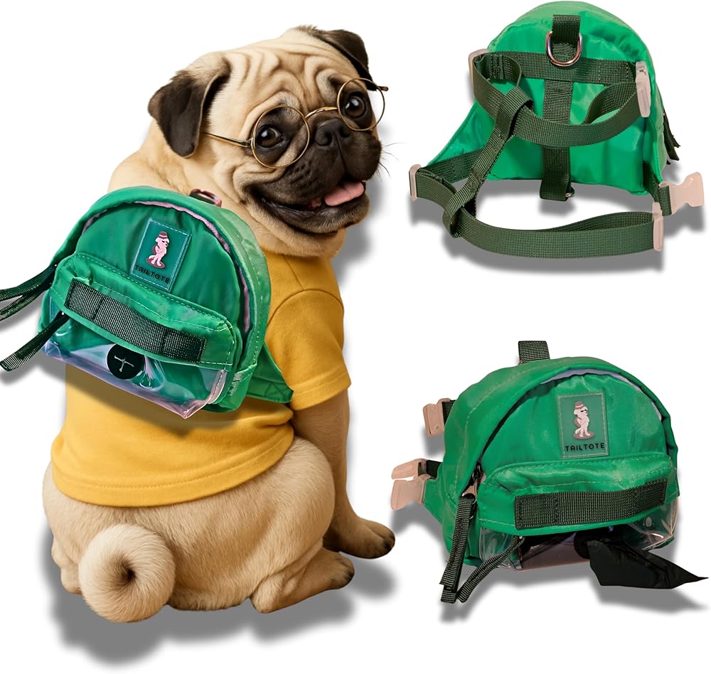 Tailtote is helping dogs stride confidently, carrying their own gear, and keeping their walks mess-free.This dog backpack is made from water-resistant durable materials to withstand the rigours of outdoor use, and its comfortable design ensures your dog's comfort.