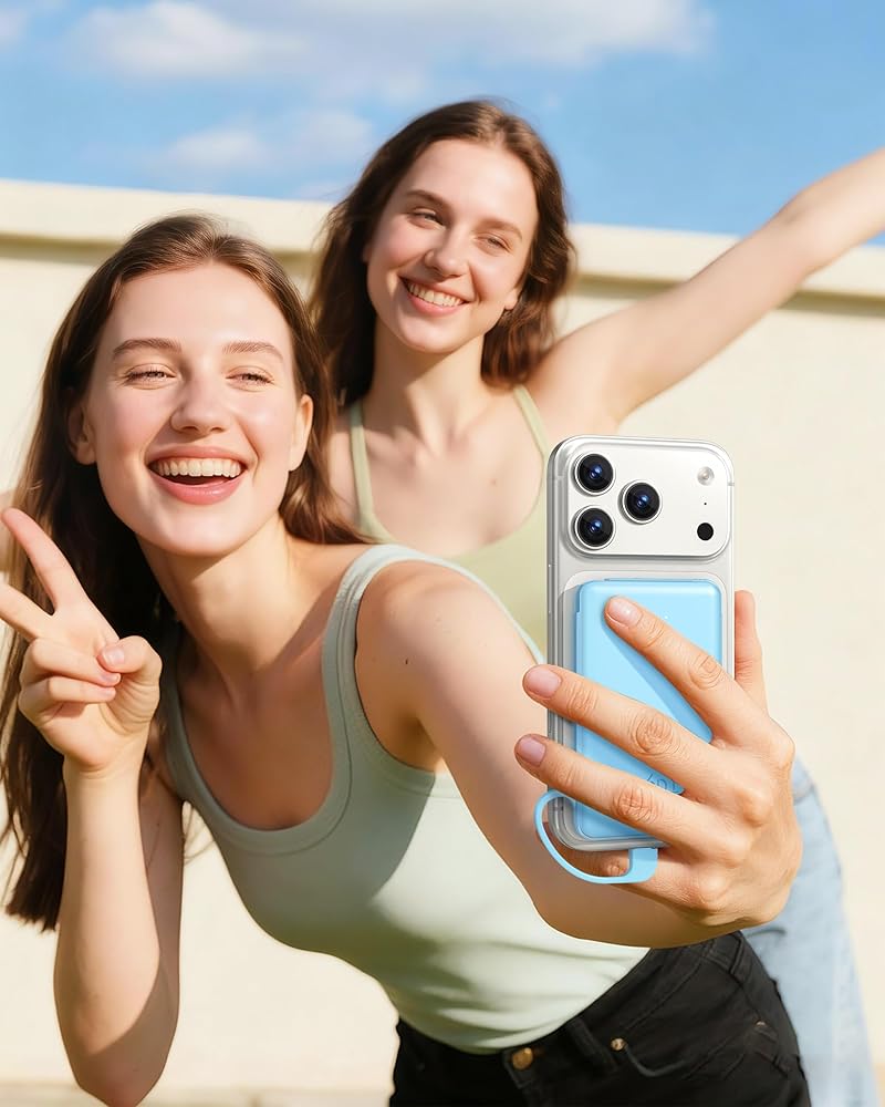 With a super mini model with dimensions of 4.4 x 2.7 x 0.65 inches and 0.29 pounds, this power bank, size of a standard deck of cards, slips your pocket more smoothly. A Good choice as travel accessories.