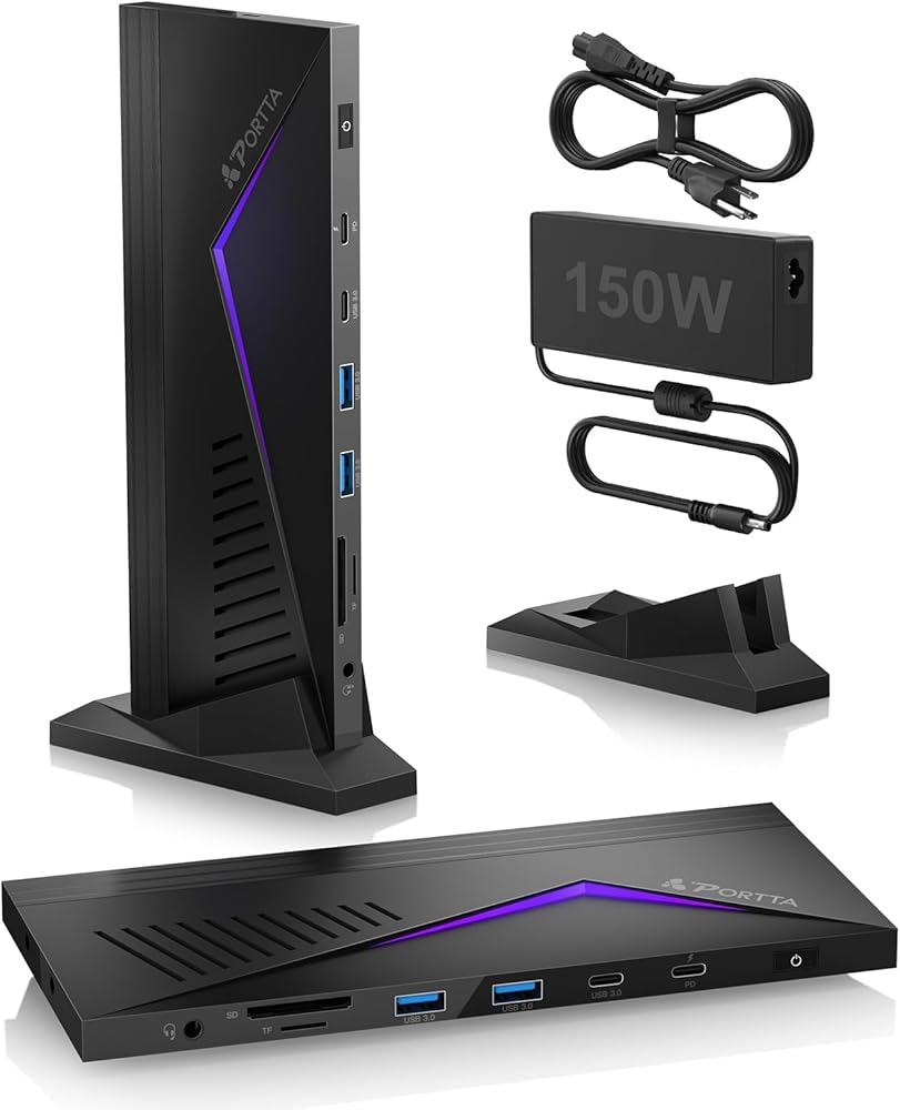 【100W PD & 20W PD Fast Charging】Equipped with a 150W, 20V, 7.5A power adapter, allows you to charge your laptop with up to 100W. Additionally, the USB-C 3.0 PD port offers 20W of charging power for connected devices such as smartphones, enhancing the versatility of this USB C dock.