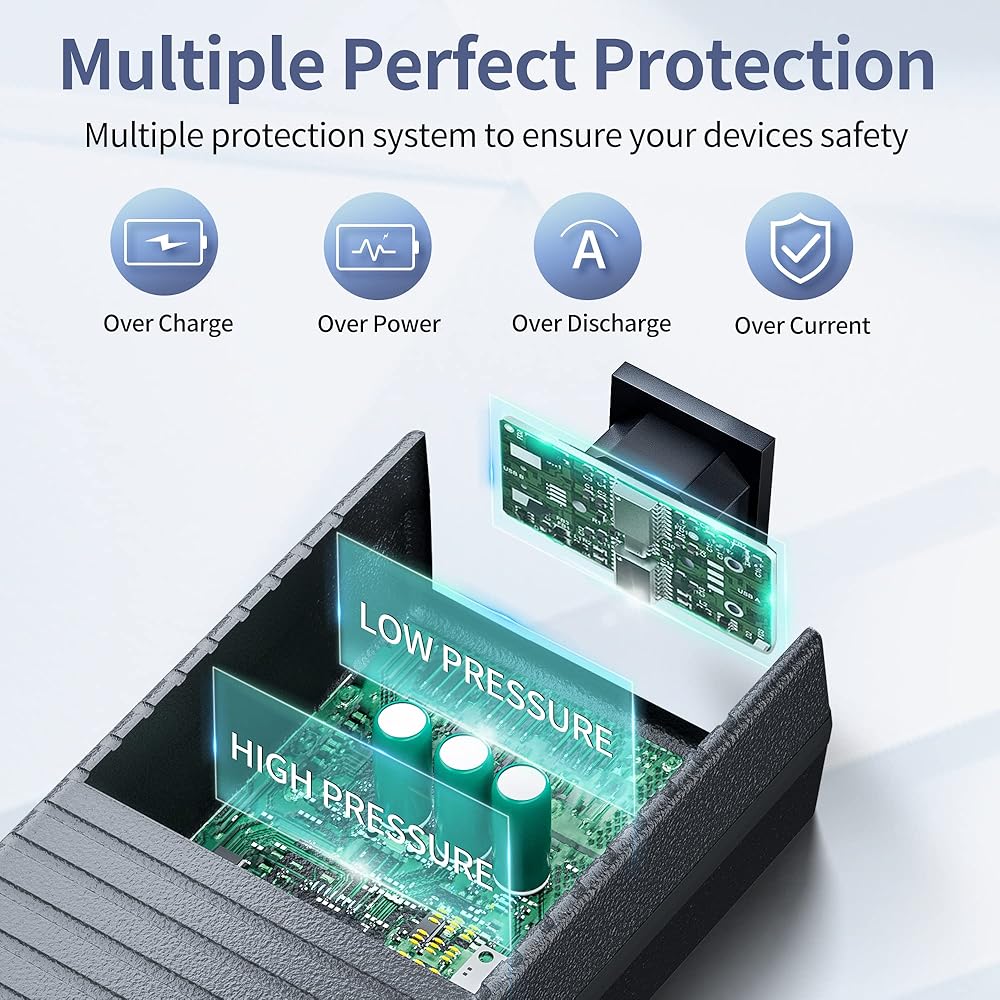 Safety Guarantee: CE & FCC & RoHS approved; Premium materials protect against Over Charging, Short Circuits, Over Powering, Over Current, Over Discharge, Over Voltage.