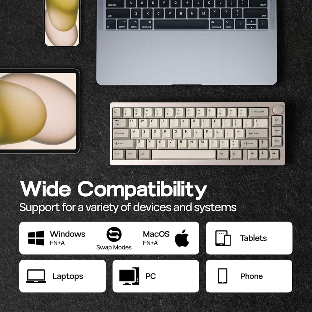 Durable Aluminum Build Quality: Constructed from durable aluminum with an anodized finish, this keyboard is designed to endure daily use while resisting wear and corrosion, ensuring long-lasting performance in any environment. It offers superior resistance to bending, flexing, and scratches compared to plastic. Featuring a hot-swappable PCB with precisely tuned plate-mounted stabilizers and support for screw-in stabilizers, it allows for easy switch replacement without soldering. This enables you to choose your preferred switches for a customized typing experience, whether you prefer tactile, linear, or clicky feedback