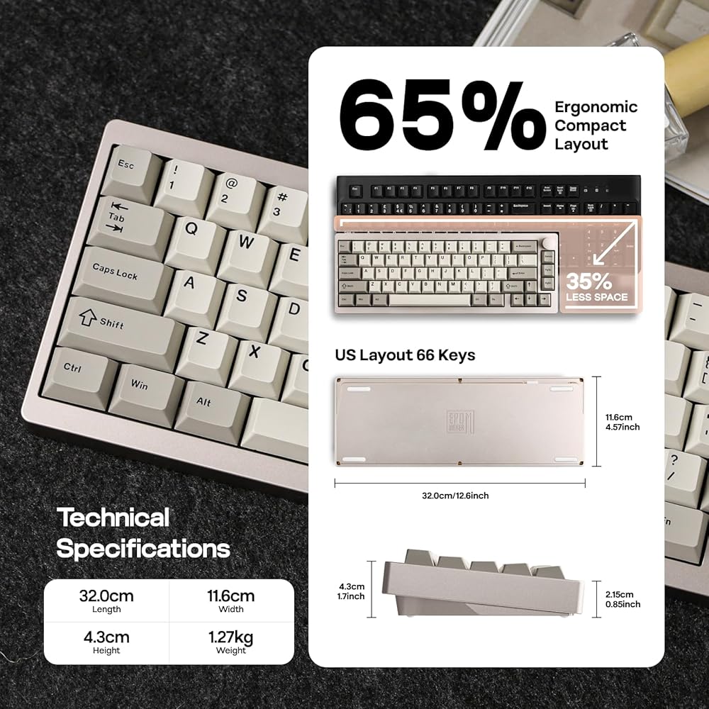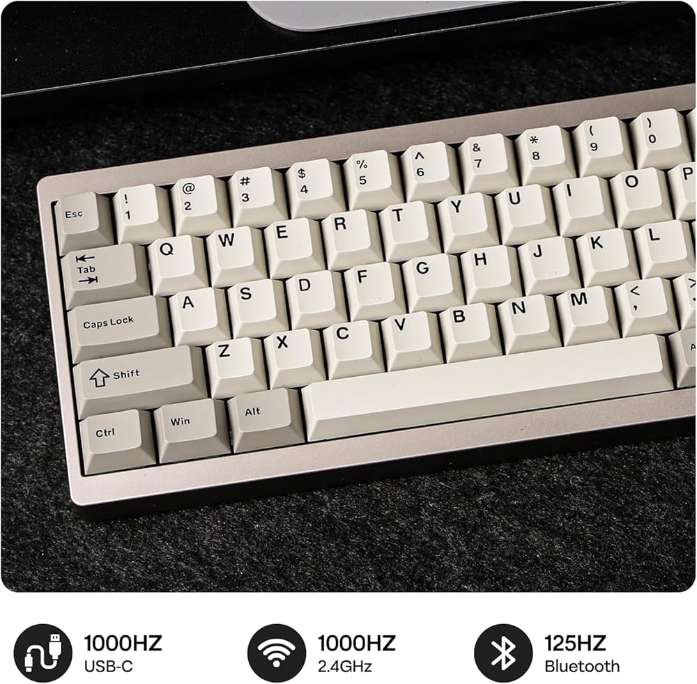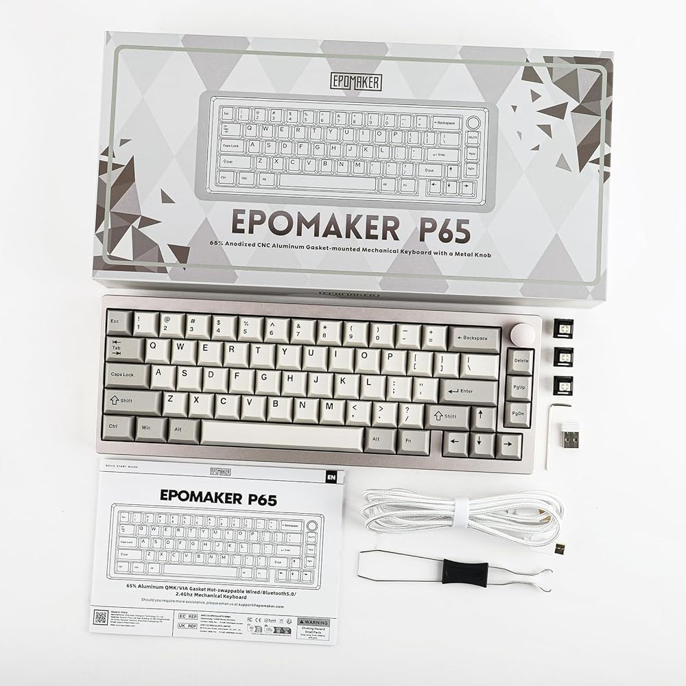 Mechanical Gaming Keyboard: Elevate your gaming and typing experience with the EPOMAKER P65 QMK/VIA Wireless Aluminum Gaming Keyboard. Designed for both aesthetics and performance, this compact 65% layout keyboard features a silver glossy knob for quick multimedia access, making it perfect for gamers and minimalists alike. Its durable CNC aluminum build ensures longevity while the customizable QMK/VIA programmability allows you to tailor the layout and macros to fit your unique workflow. With multiple connectivity options and vibrant RGB backlighting, the EPOMAKER P65 is not just a keyboard; it's a powerful tool that enhances productivity and provides an immersive gaming experience