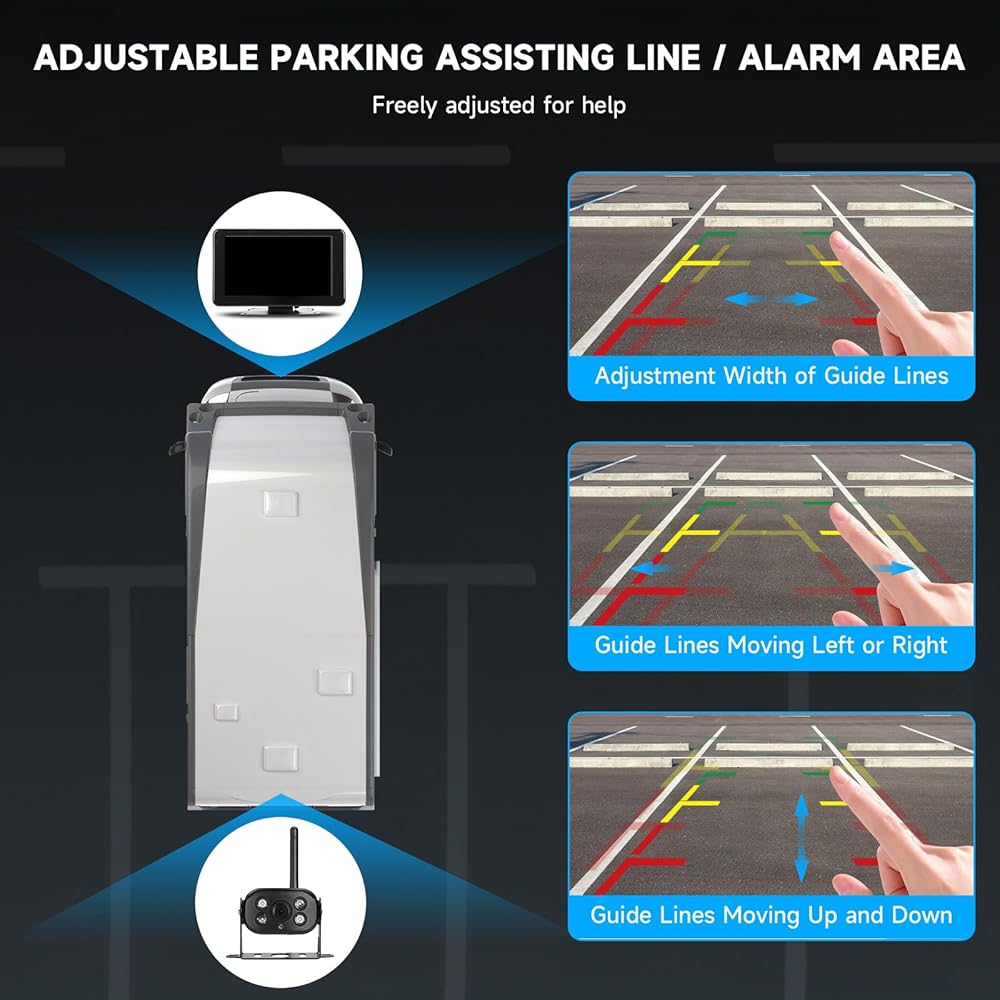 Park Like a Pro Every Time - Experience the convenience of adjustable reversing guidelines that are precisely calibrated to your camera's position and installation height. These dynamic lines offer visual cues that help align your vehicle perfectly when backing up, eliminating uncertainty and preventing mishaps. Whether you're parking in a crowded lot or reversing on a narrow street, this feature guarantees a smooth, professional-grade parking experience every time.