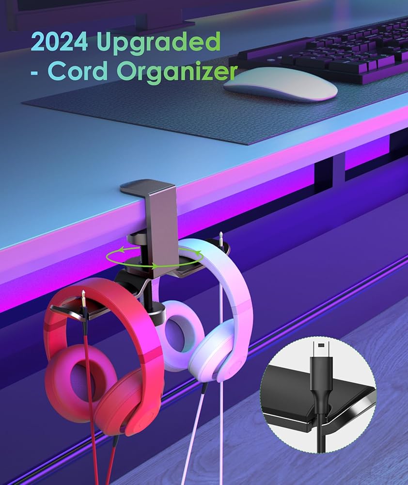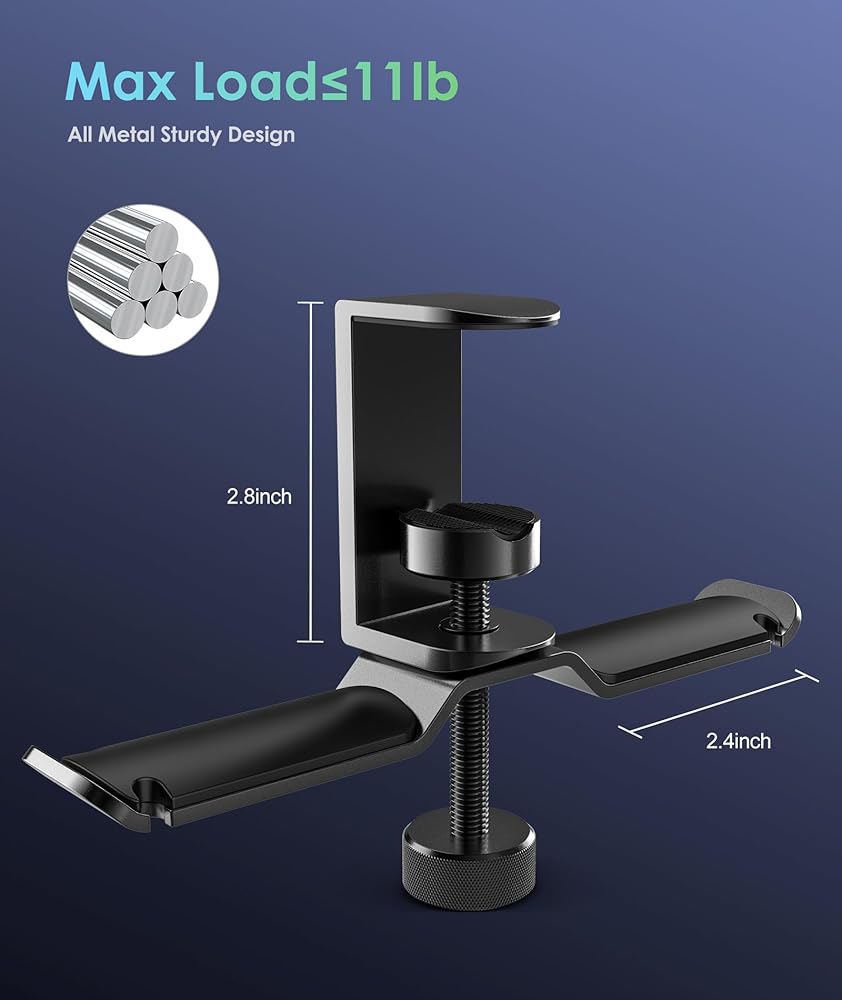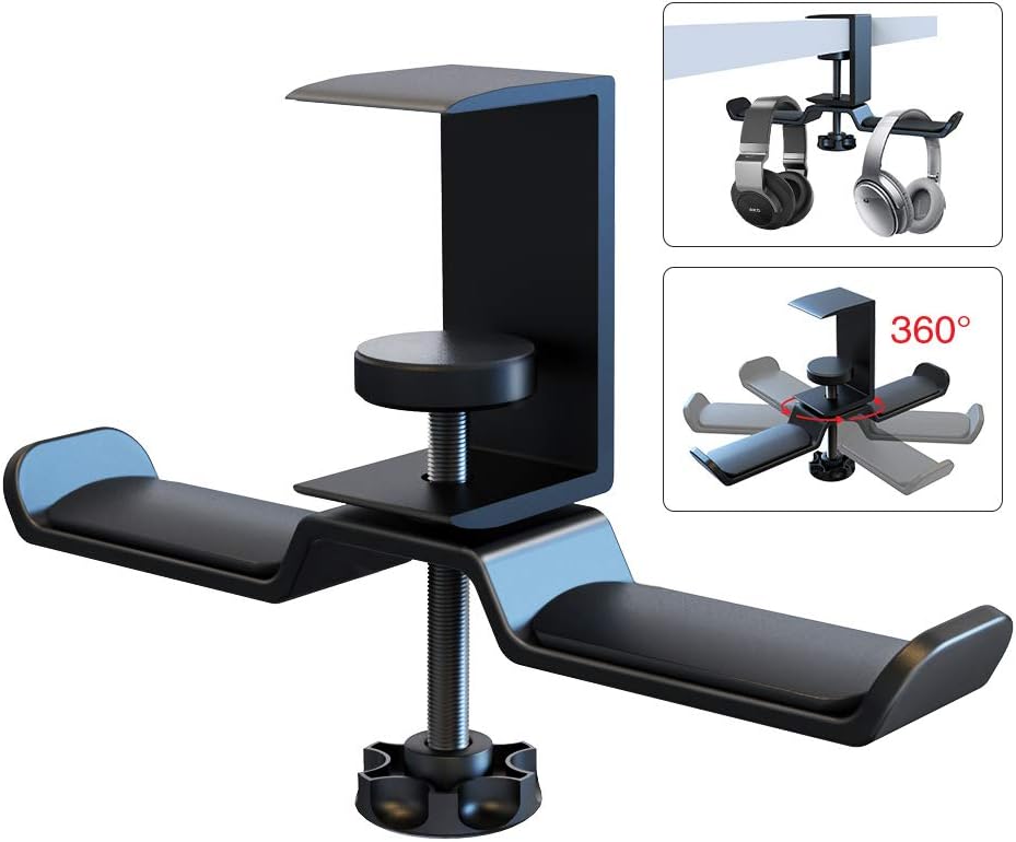 2022 Upgraded Version: The arms can be easily rotated 360°, inward, outward, leftward, and rightward by your desire. Rotate them to stay under the desk AND won't get in the way. Dual design allows you to store two sets of headphones. The holder with dual 2.5in arms make it ideal for all kinds bluetooth headphones & wired headphones, such as Bose, Beats, Sony, AKG, JBL, COWIN etc