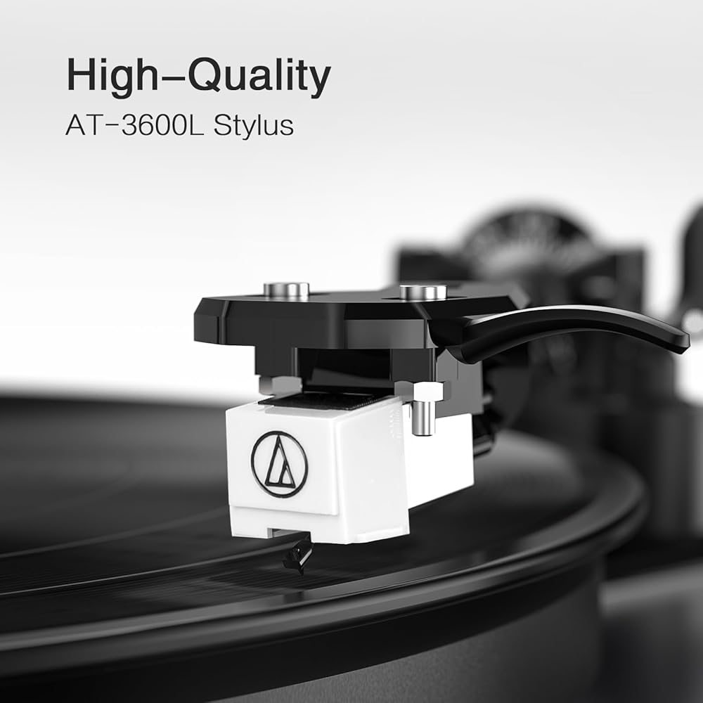 Magnet-Type Cartridge & Adjustable Counterweight: Featuring a precision magnetic cartridge AT3600L and an adjustable counterweight, this turntable provides clear sound clarity and lets the tonearm for optimal tracking and reduced wear on your records