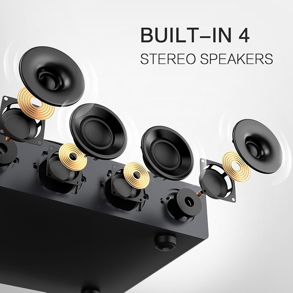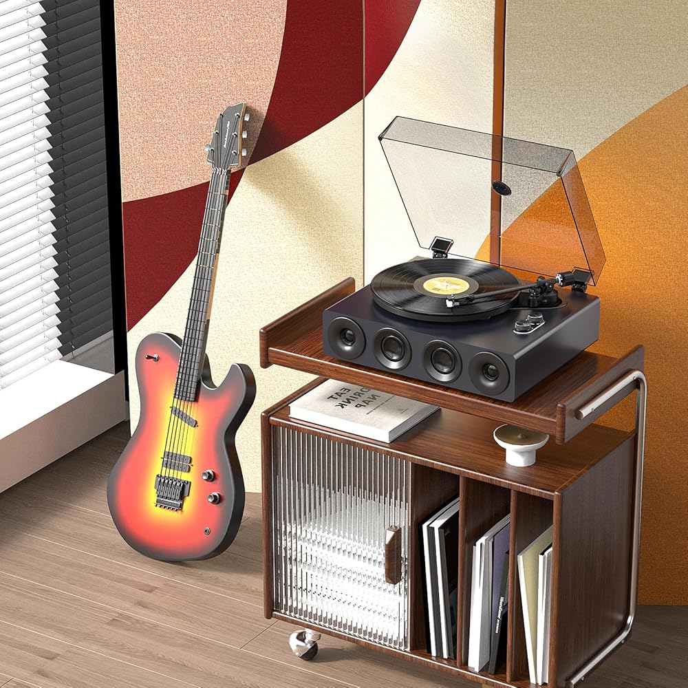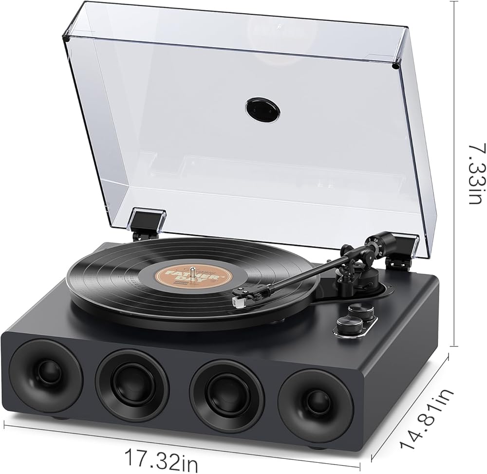 Built-in 4 Speaker: Equipped with 2 silk tweeters and 2 mid-bass speakers, this record player delivers well-balanced, studio-quality sound. Experience powerful bass and crisp, clear tones with minimal distortion