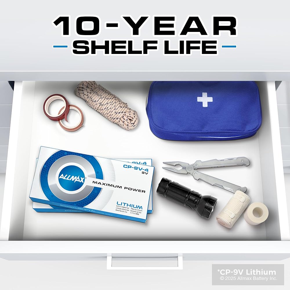 ★ 10-Year Shelf Life – Allmax 9V Lithium Batteries are always fresh and maintain power for up to 10 years in proper storage. This makes Allmax batteries the perfect choice for long-term storage and emergency preparedness kits.