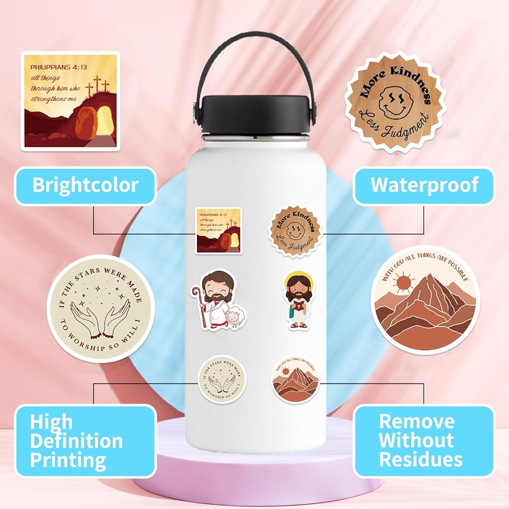 Excellent Quality: Made of high-quality vinyl material, it has waterproof and non fading functions. High definition printing technology ensures clear patterns and bright colors for Bible stickers.