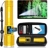 【LONG LASTING USE & LCD DIGITAL DISPLAY】The powerful flash light is equipped with 5000ɱAɦ ba-tt-ery, which can last for up to 20 HOURS at low mode. This led rechargeable flashlight with the LCD power percentage display is clearly visible, so you can quickly judge how much power is left.