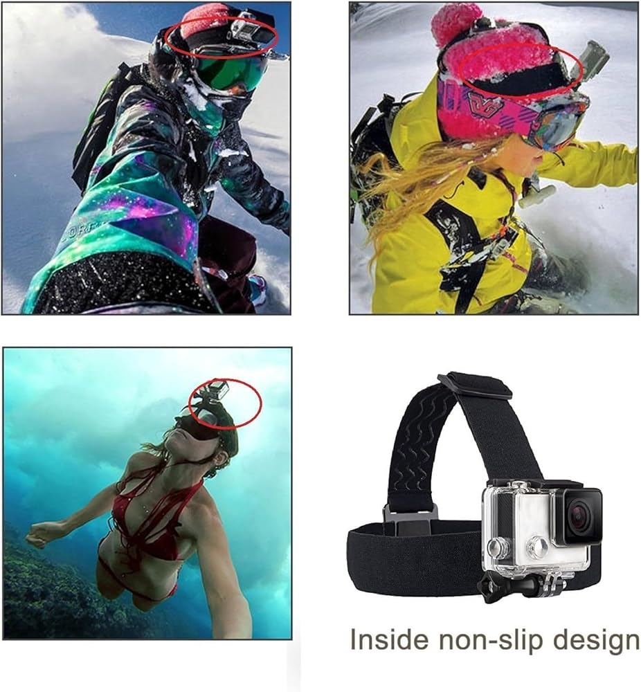 【Fully Adjustable】Comfortable, fully adjustable to fit a wide range of adult sizes. Made of superior quality elastic adjustable nylon strap material, works well for low-impact activities. The inner side of the elastic headband strap adds skin-friendly non-slip rubber inserts design to increase friction for fixing firmly your Go Pro and other action cameras