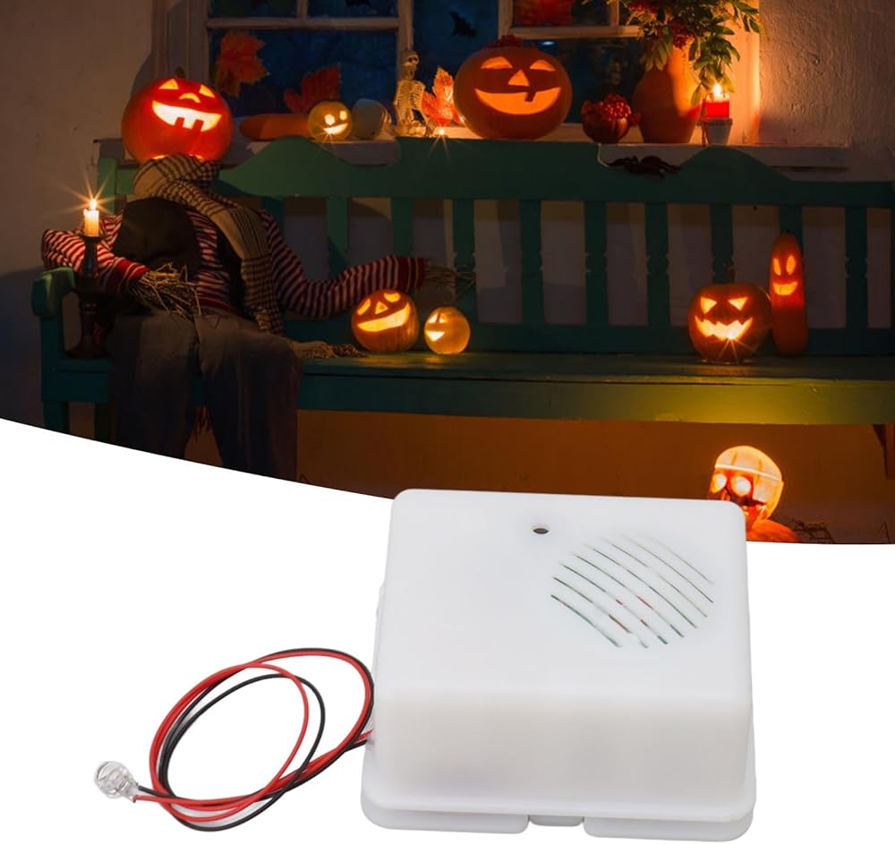 1. SCARY FEELING: Horror loudspeaker hides inside all kinds of Halloween decoration items to give you a scary feeling on Halloween day.