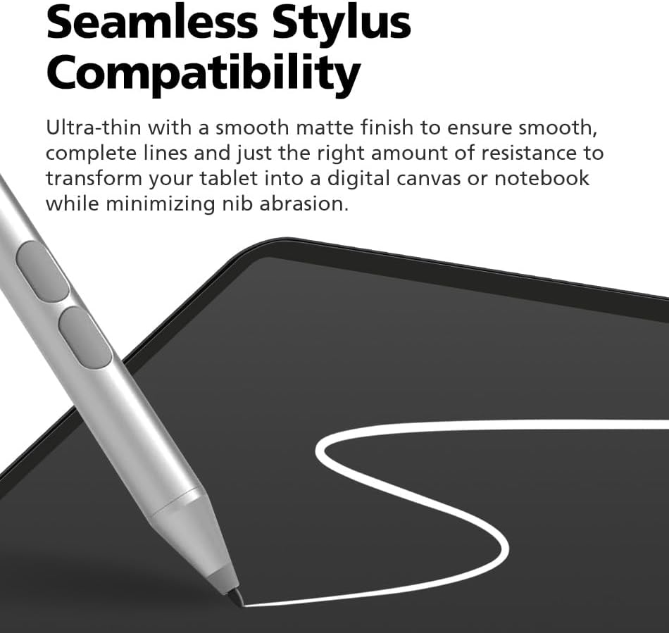 【FEELS LIKE WRITING & DRAWING ON REAL PAPER】The premium paperfeel texture of surface makes you feel like paper, providing you with a wonderful and delicate writing and painting experience. Also it provides more resistance on the touchscreen than normal tempered glass which gives you more control and accuracy when drawing. The optimized ultra-thin surface which has finer and denser particles also helps to reduce the rate of wearing down on the pencil tip so you can use for longer.