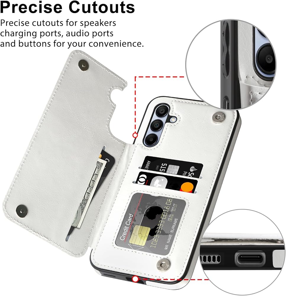 Premium PU leather: This A54 case is made of soft, durable and shockproof PU material, guards your Phone against scratches and drops. With raised edges of the back camera and flip cover for the screen can effectively provide the maximum protection from bumps and drops.