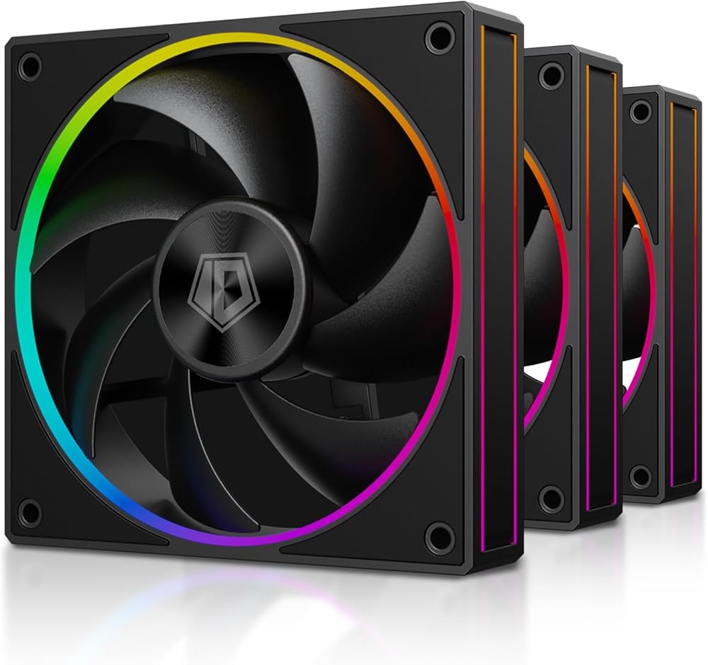 ID-COOLING AF-127-K-TRIO 120mm Case Fan ARGB FDB Bearing PC Fan Daisy Chain Connector Computer Fan for Radiator/CPU Air Cooler/Computer Case, 3 Pack, Black