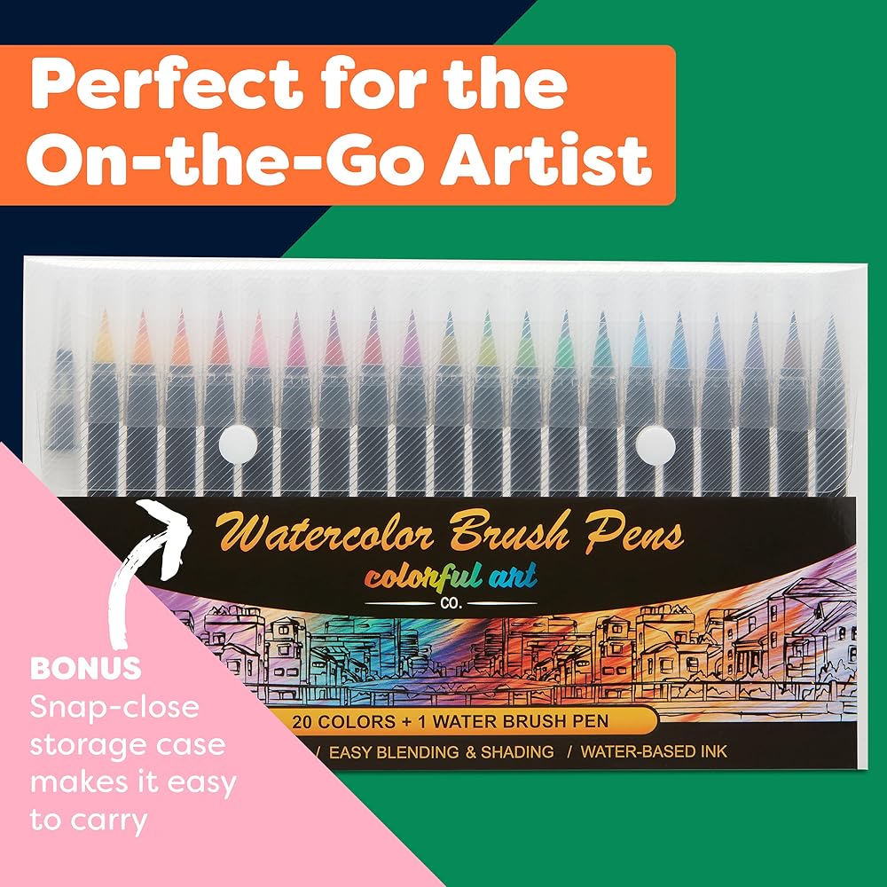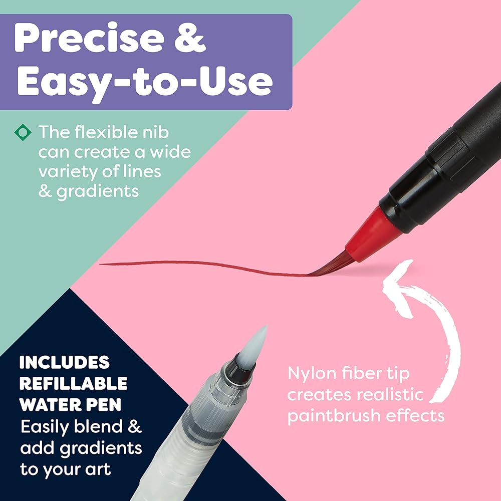 With 20 stunning colors to choose from, these easily blended watercolor pens will inject vibrancy into your paintings, calligraphy, and crafts