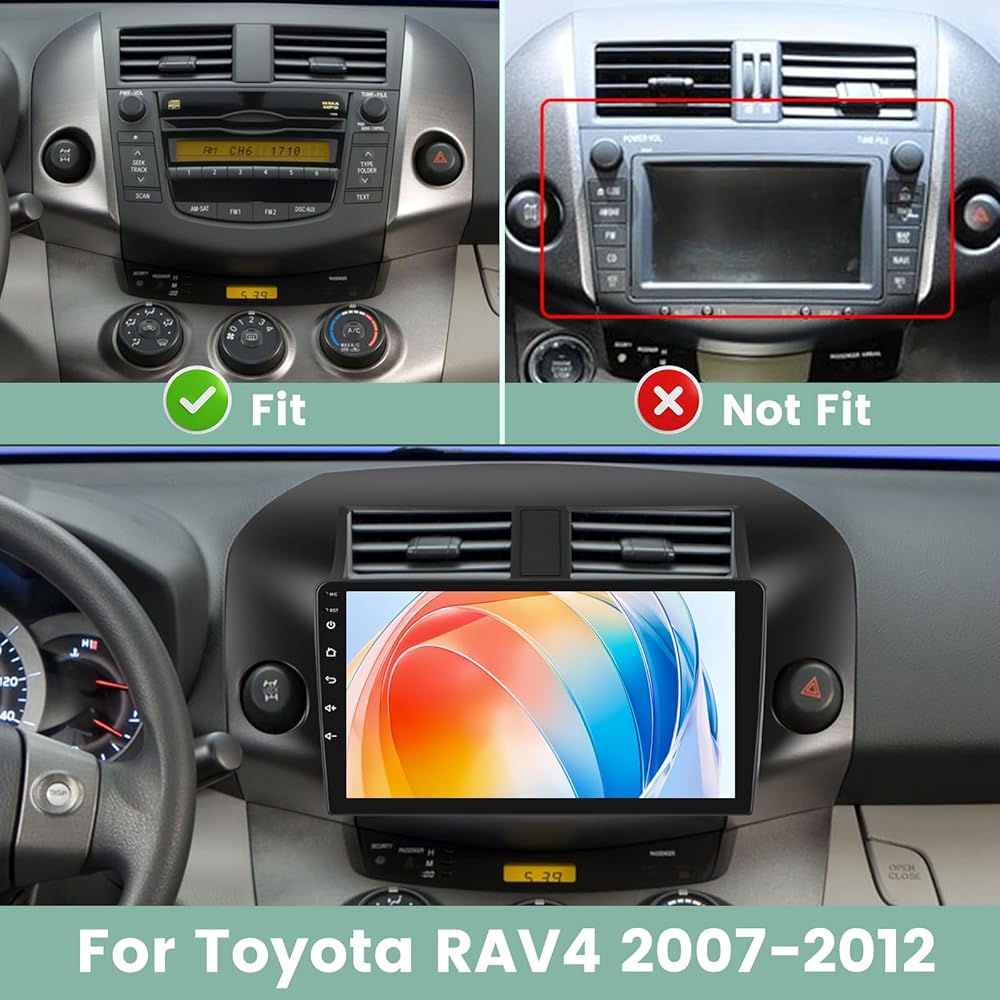 【Car Stereo Compatibility】The Android unit 10 inches touch screen for Toyota RAV4 2007 2008 2009 2010 2011 2012. Plug & play, all necessary harness are provided. If you can't confirm, send us a picture of your car center console and we'll help you out