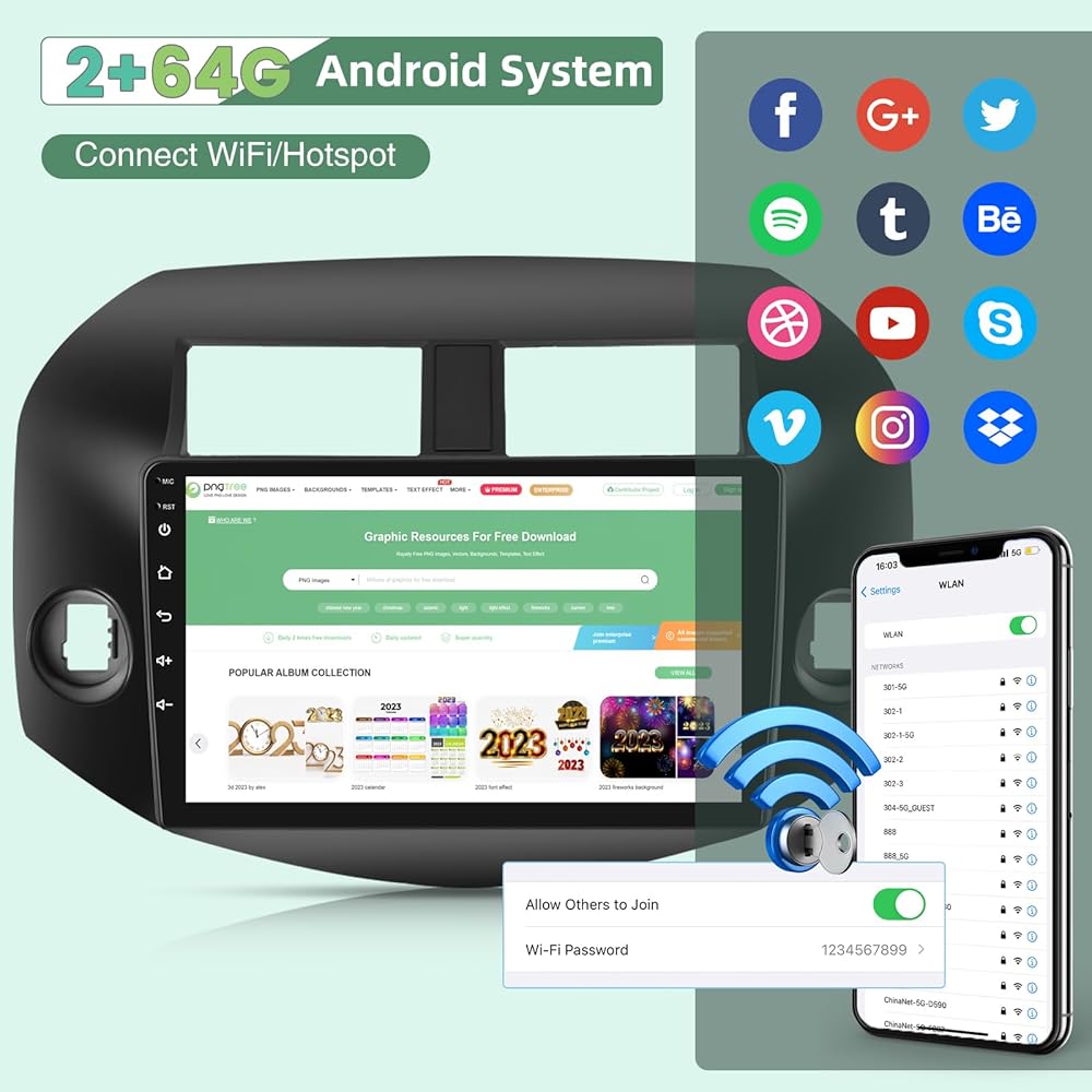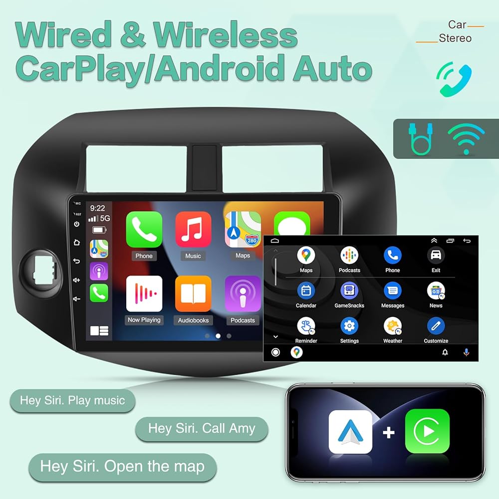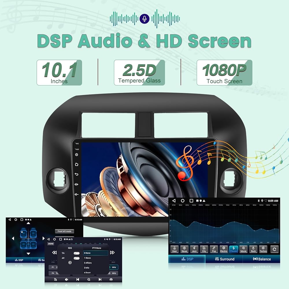 [2G+64G] Radio for Toyota RAV4 2007 2008 2009 2010 2011 2012, Android 10 inch Touch Screen RAV4 Car Stereo, Carplay/Android Auto/EQ Audio/1080P/SWC/Bluetooth