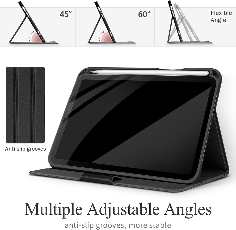 auaua Case for iPad mini 7 (A17 Pro), iPad mini 7th/6th Generation (2024/2021 8.3-inch), with Front Pocket Pencil Holder, Typing Angle Muti-Stand Magnetic Closure Auto Sleep/Wake (Black)