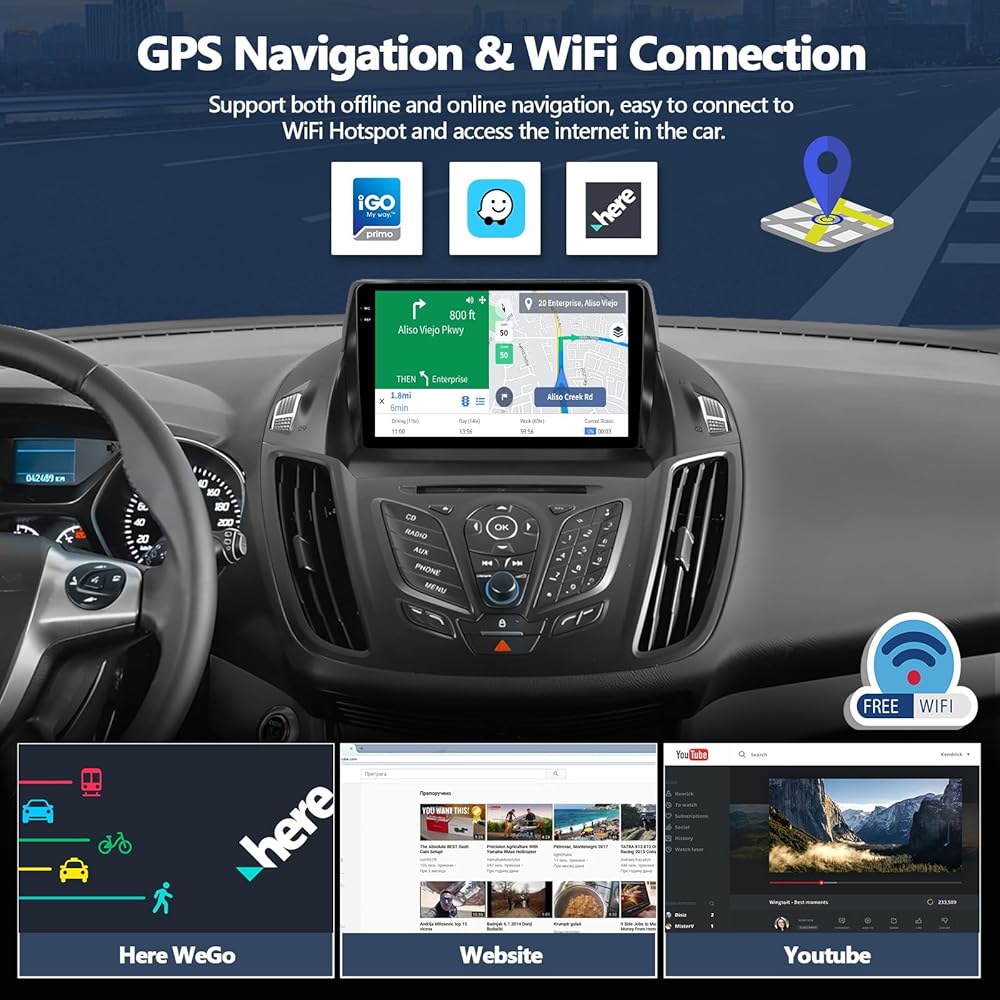【Built-in GPS & WiFi Module】Connect to WiFi or mobile phone hotspot, and you can surf the Internet, download and run any APK on the Andriod head unit, such as Youtube, Spotify, Netflix, Waze, Maps... Built-in GPS, you can navigate online or offline, plan your driving route in advance