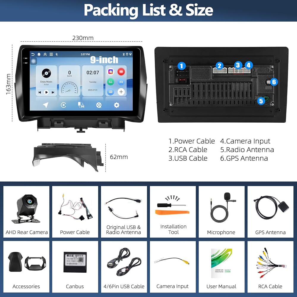 【Car Stereo with Backup Camera】The Android head unit is equipped with a 720P AHD rear view camera, which can automatically and clearly display the reversing image when in rear gear, providing safer reverse assistance.