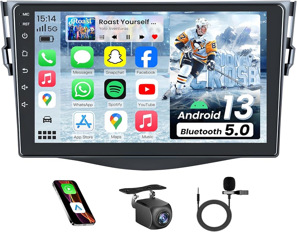4Core + 64G ROM Upgrade Car Radio for Toyota RAV4 2007 2008 2009 2010 2011 2012: 9 inch 1280*800 HD Touchscreen Stereo with Wireless Carplay Android Auto 1080P Backup Camera Bluetooth GPS 5G WIFI FM