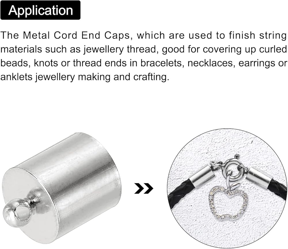 • The Metal Cord End Caps, which are used to finish string materials such as jewellery thread, good for covering up curled beads, knots or thread ends in bracelets, necklaces, earrings or anklets jewellery making and crafting. Moreover, it is also a good choice to combine it with leather, suede, fringe, lace, ribbon.