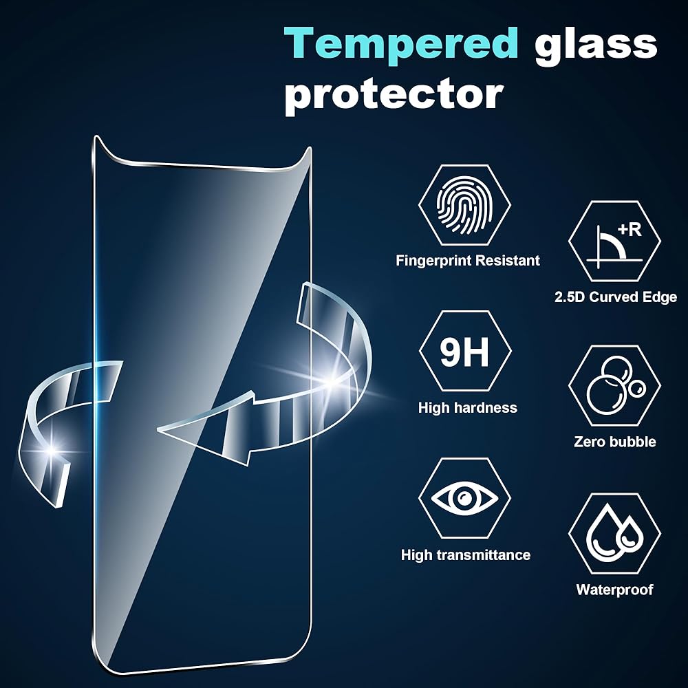 [Comprehensive Protection] Made of high quality tempered glass material, the oleophobic nano-coating makes the surface of the protective film oil and water resistant and fingerprint resistant, all-round dead angle protection for your phone, so you no longer worry about your phone leaving scratches, cracks and dirt.