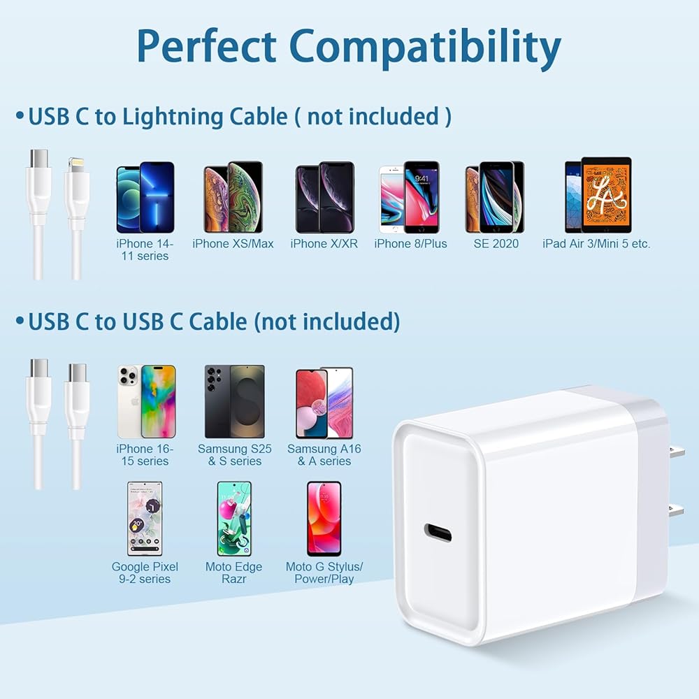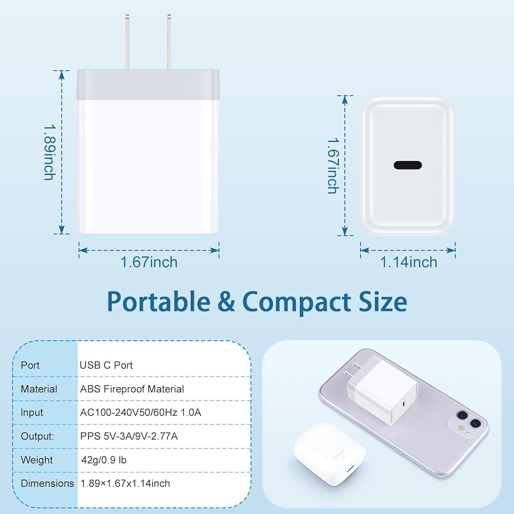 USB C Charger Block Fast Charging Block Compatible with Samsung Galaxy Phones iPhone Tablets Watch and more