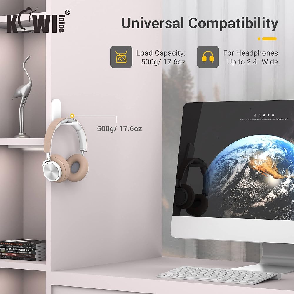 【Universal Under Desk Design】This headphone hook holder compatible with desk surfaces from 10-40mm / 0.4-1.6" thick, hold headphones up to 60mm / 2.4" wide, fits most mainstream headsets on the market.
