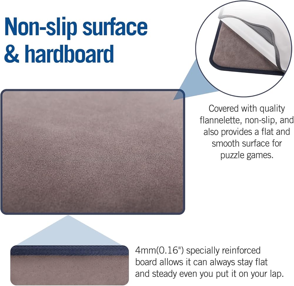 Non-slip surface & hardboard - 4mm(0.16") specially reinforced board allows it can always stay flat and steady even you put it on your lap. Covered with quality flannelette, non-slip, and also provides a flat and smooth surface for puzzle games.
