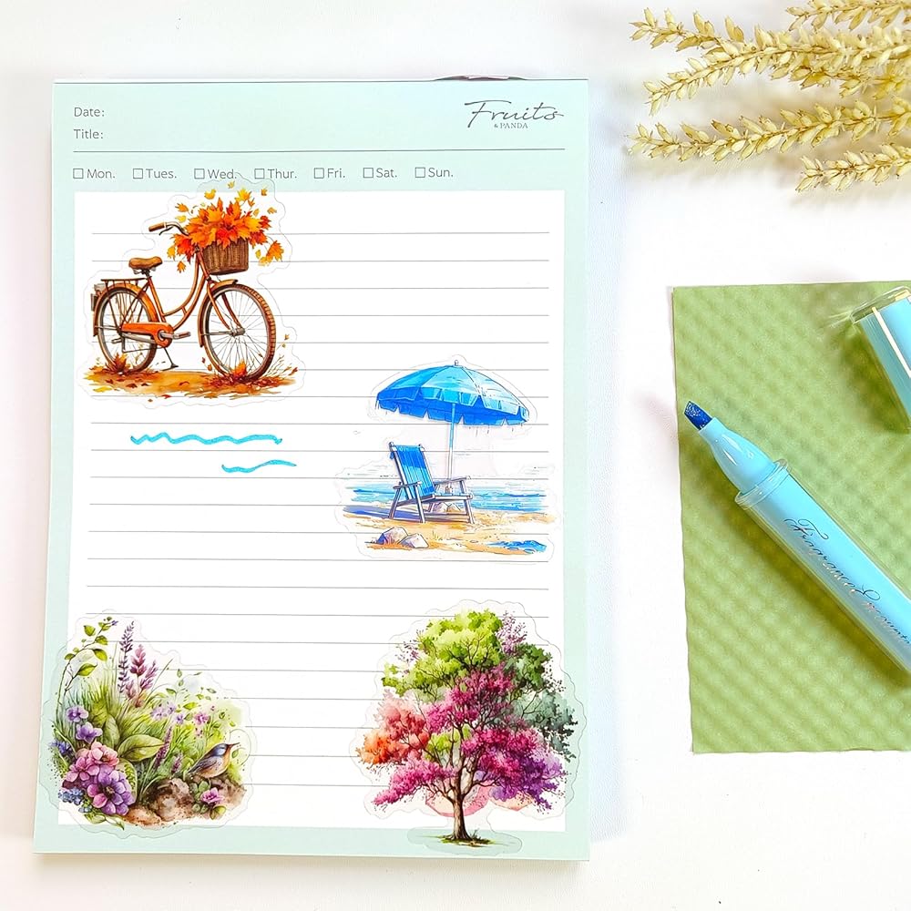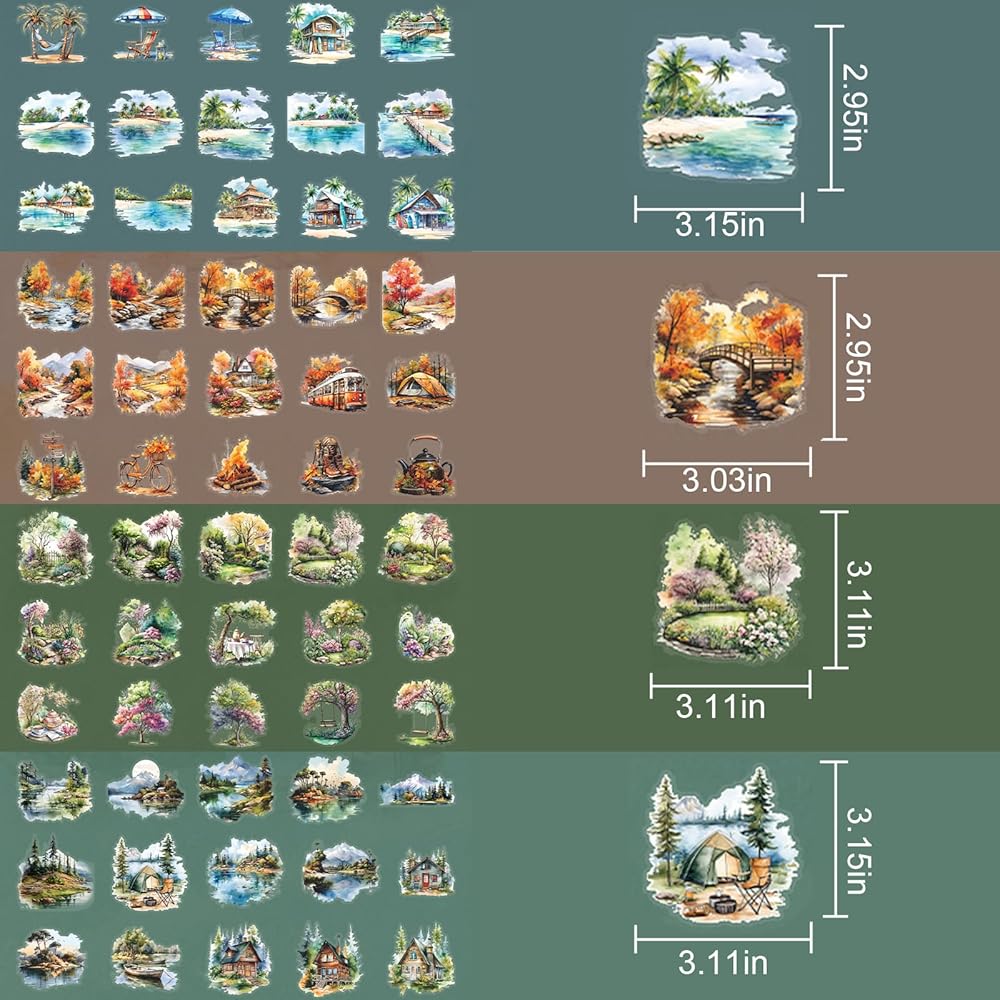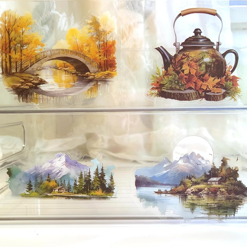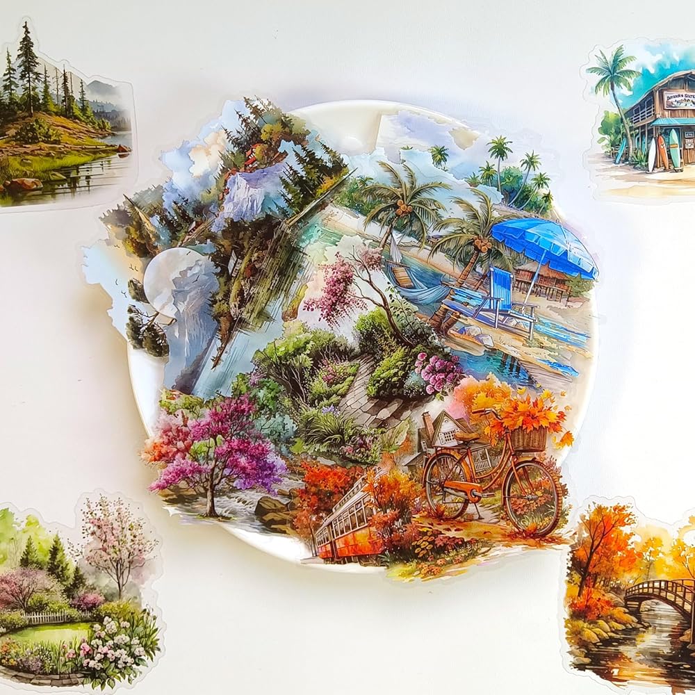 Nature Landscape Stickers Set - 120 Pcs Clear PET Travel Stickers for Scrapbooking, Journaling, Junk Journal, Collage - Waterproof Transparent Mountain Forest Beach for Scrapbook Supplies