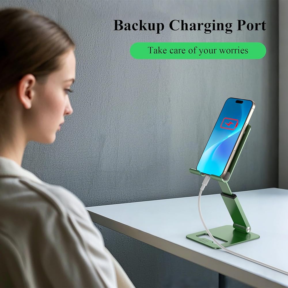 Minthouz Phone Stand, Extendable & Foldable Mobile Phone Stand, Angle/Height Adjustable Phone Holder Compatible with iPhone 17 16 15 14 Pro Max and More 4.7"-7.9" Phones-Gold (Green)