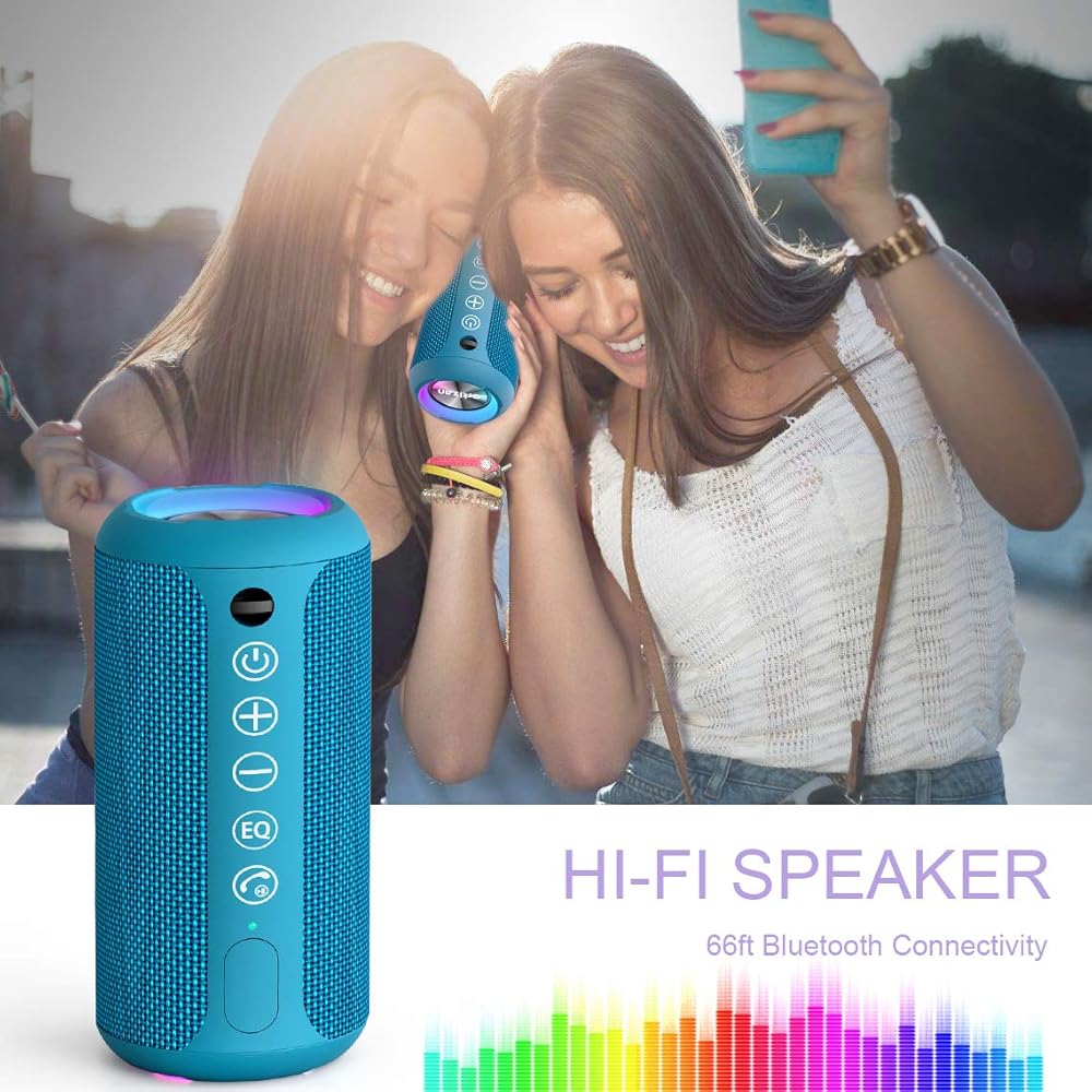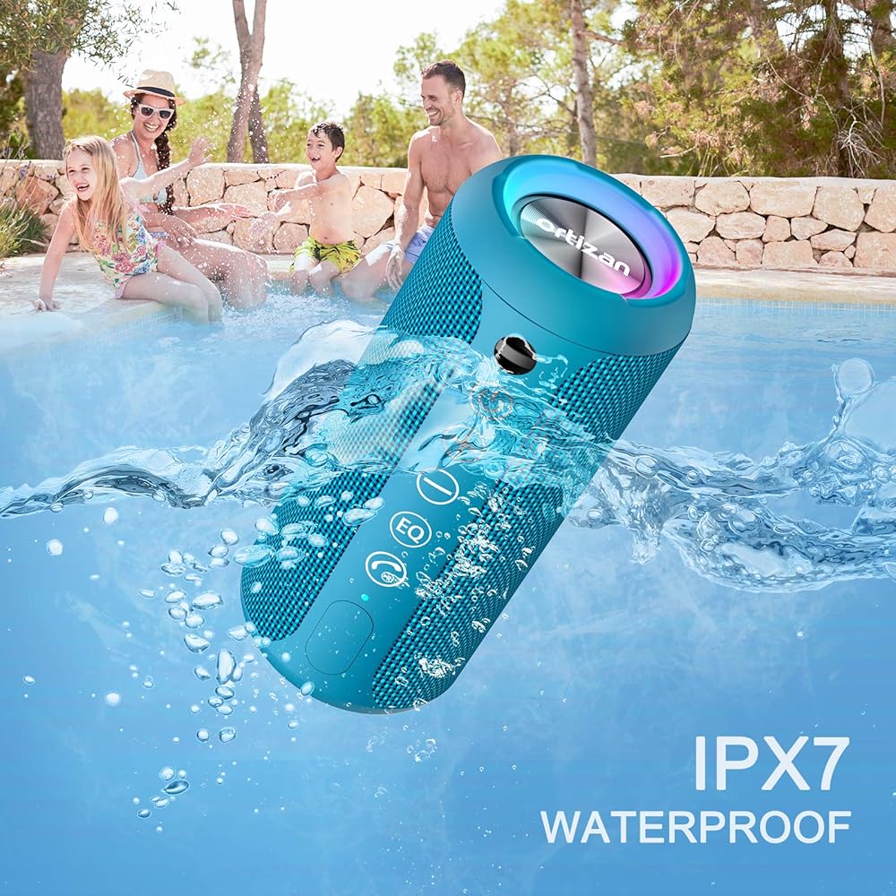 [IPX7 100% Waterproof]: IPX7 waterproof protection safeguards against rain, dust, snow, and spills, even the outdoor speaker can be fully immersed up to 3ft for about 30 minutes underwater. Perfect for showering, hiking, camping. No worries about weather and outdoor condition, be the Rocker on your trip.