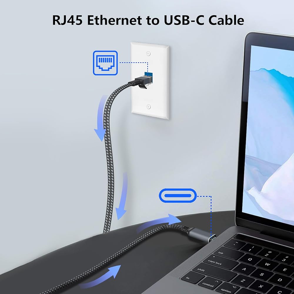 [Effortless Connectivity]: No driver required, making this USB C to Ethernet cable incredibly convenient. Simply plug it into your device to establish a stable network connection, eliminating the need for adapters. Perfect for devices with damaged RJ45 ports or for those seeking a direct connection to routers, modems, or network switches.