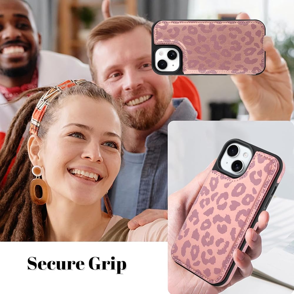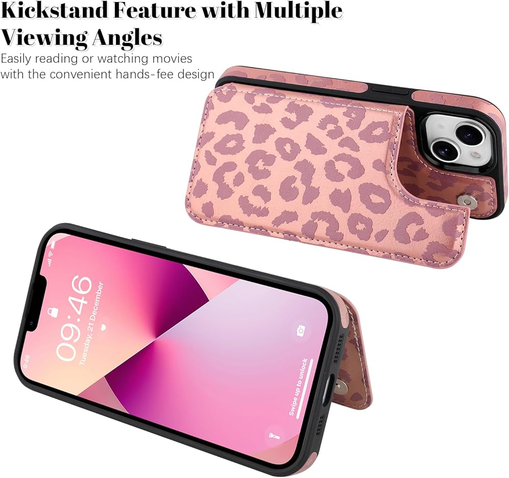 OOK for iPhone 13 Case Wallet with Card Holder, Cute Pink Leopard Cheetah Pattern for Women Girls RFID Blocking 3 Card Slots Kickstand Flip Folio Leather Protective Shockproof Phone Case