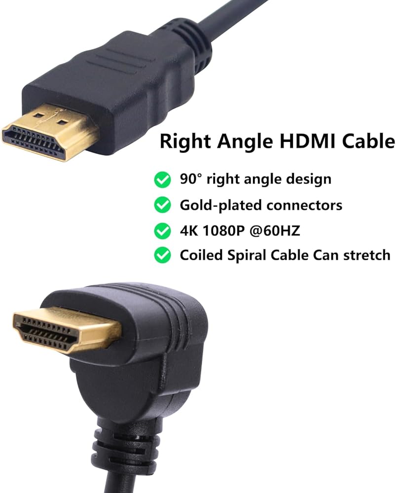 Right Angle HDMI Coiled Cable 90 Degree Down Angle HDMI Male to HDMI Male Spring Spiral Cord High Speed Supports 4K 60Hz 1080P Compatible for TV PC Laptop (Down Angle)