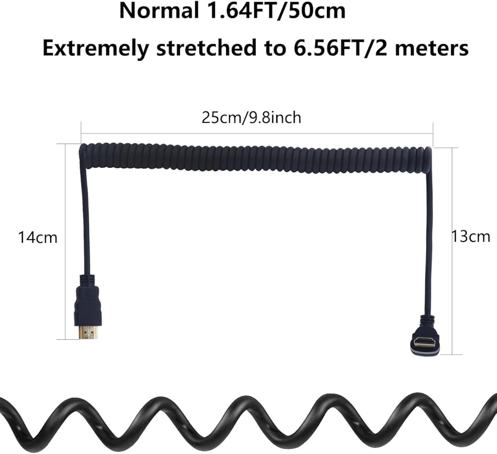 【HDMI coiled cable】Coiled Spiral Cable Can stretch, extremely stretched to 6.56FT (2 meters),Normal 1.64FT(50cm).Gold-plated connectors resist corrosion, provide durability, and improve the signal transmission.