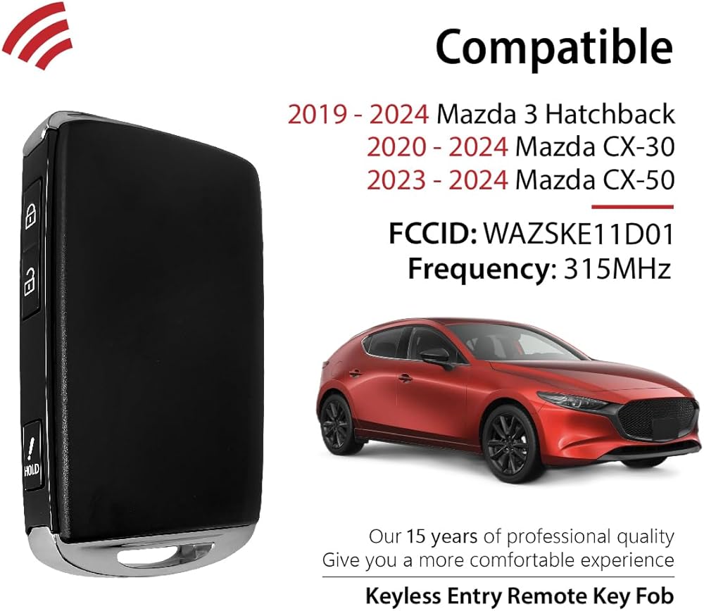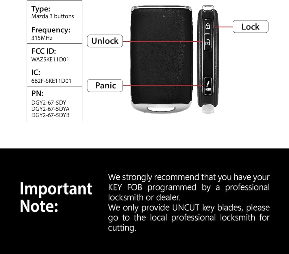 Compatible Vehicles: Part Number: DGY2-67-5DY FCC ID: WAZSKE11D01. Replacement for 2019 - 2024 Mazda. For full complete list, please check our product description