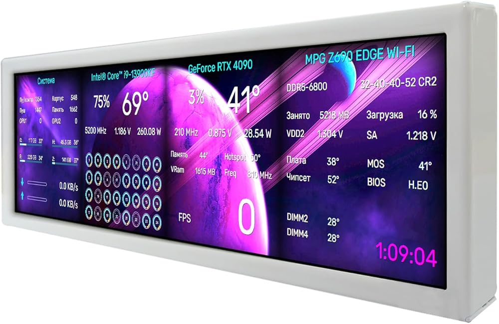 IPS Panel: 1280x400 resolution with IPS viewing angle, 350cd/m2 screen brightness,bring clear and bright image display
