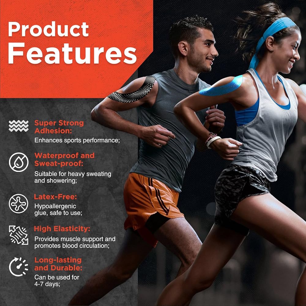 LONG LASTING ABRASION AND WATER RESISTANCE: OK TAPE PRIME are made to withstand more wear and tear and can be used for up to 5 days, reducing the need for frequent changes. OK TAPE kinesiology tape strips also performs well in wet conditions, including swimming, rain and sweating from strenuous exercise.