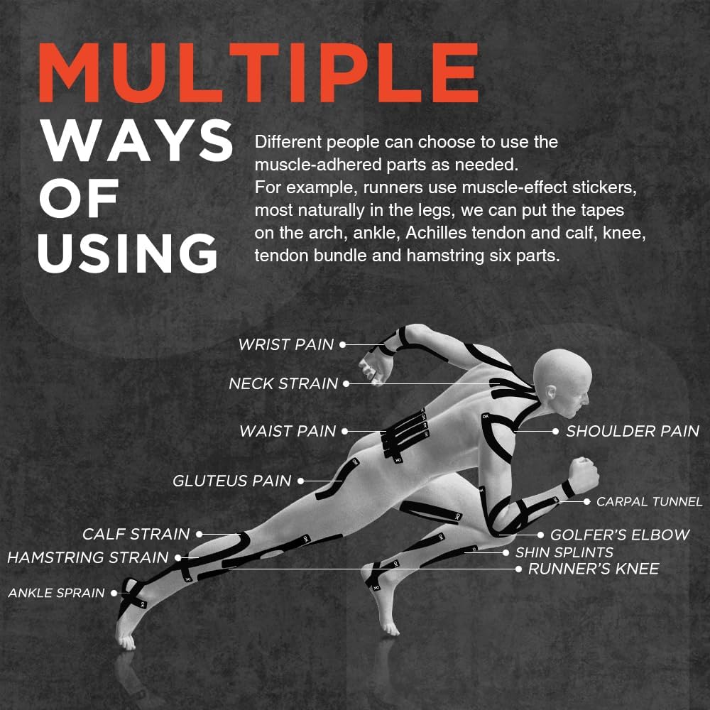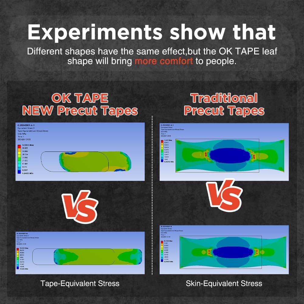 WIDE APPLICATION: OKTAPE synthetic kinesiology tape comes pre-cut for easy application on areas like shoulders, arms, back, knees, thighs, and ankles. The pre-cut design ensures accurate placement for pain relief and prevention. It's ideal for conditions like back pain, knee pain, shoulder injuries, plantar fasciitis, and more, providing targeted support for effective recovery.