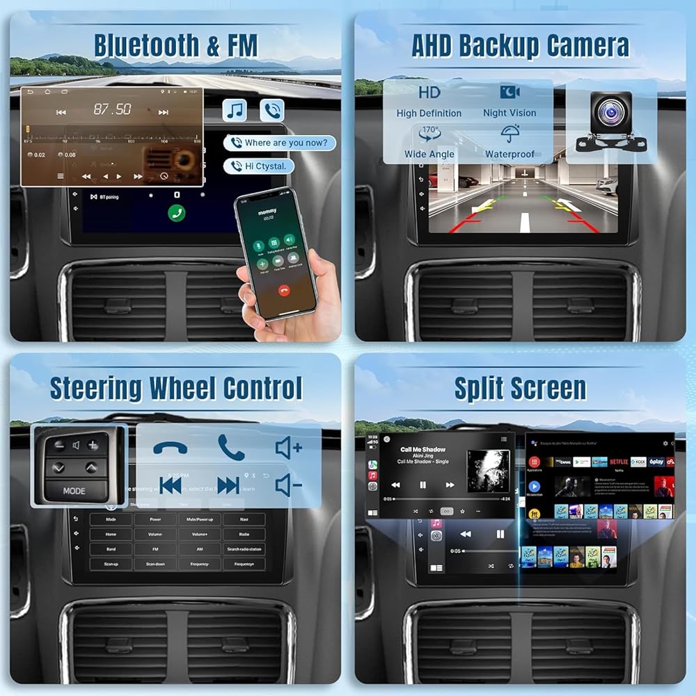 👍【Features】~Supports CarPlay/Android Auto connect via Bluetooth, project the contents of your phone to the large screen of the host, and you can share your favorite 1080P videos, high-definition pictures, etc. Easily access your phone to make calls, navigate, play music or manage other apps via Siri/Google controls.