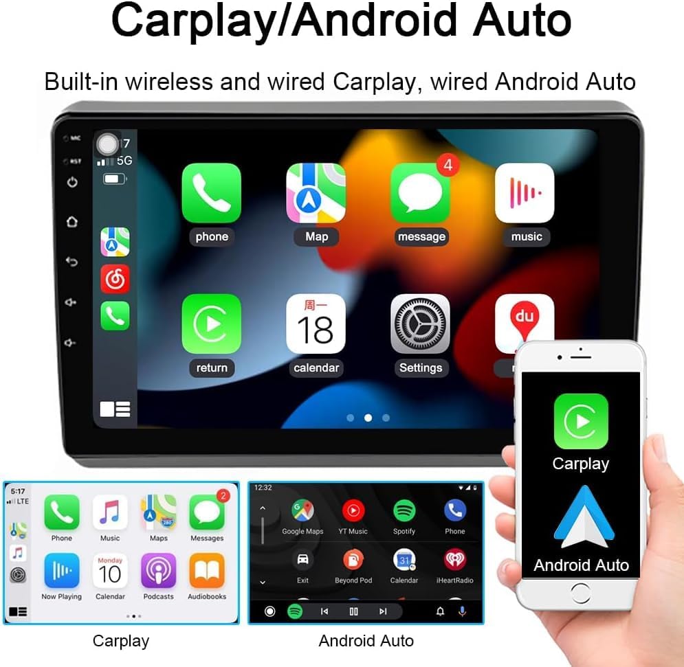 🚩【Function】~The car radio receiver support wireless carplay and android auto. You can making calls hands-free with the help of Siri/Google Assistant, easy to get phone contacts, emails, notifications, map navigation, music, videos and more which let you focus more on road safety while driving!