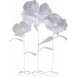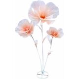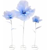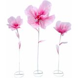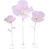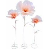 Flower head diameter: The set comes with 3 gauze flower heads , with diameters of approximately 19.69 inches, 23.62 inches, and 27.56 inches, a pole height 52.36 inches, and a metal base 8.27 x 8.27 inches. Weight: 2KG/4.4LB Package Size: 40/36/17cm(16.7/14.2/6.7in) Included: Metal base 3 flower heads 3 flower stems 1 base/ 3 bases
