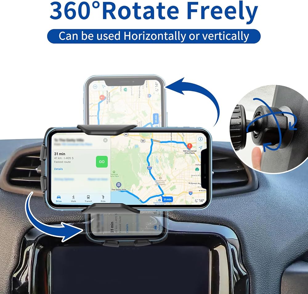 【360° Rotation】Using a 360° ball joint, you can rotate freely and switch horizontally and vertically at will. You can choose an angle that suits you better. The stable car phone holder provides a safer driving experience.