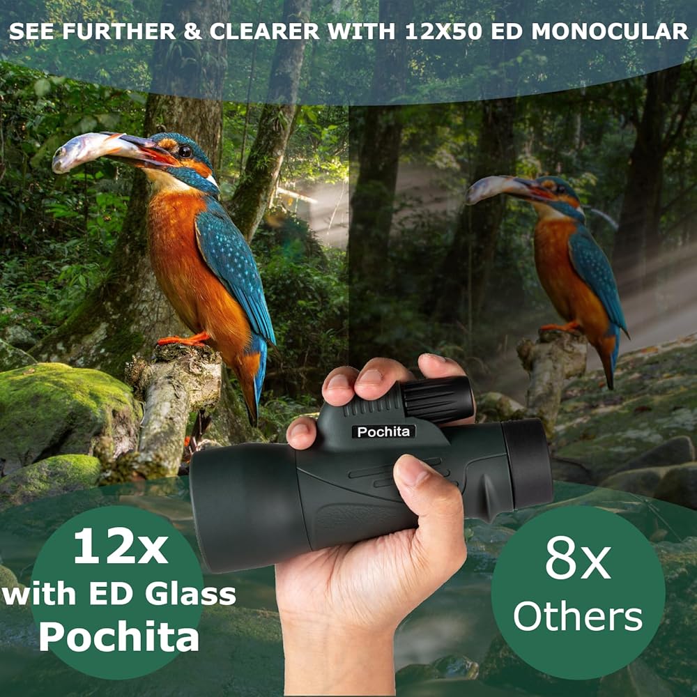 12x50 Monocular Telescope for Adults+Binoculars for Bird Watching-12x50 HD Binoculars for Adults High Powered-Hunting Binocular with IPX7 Waterproof | Fogproof |Large View |Lightweight