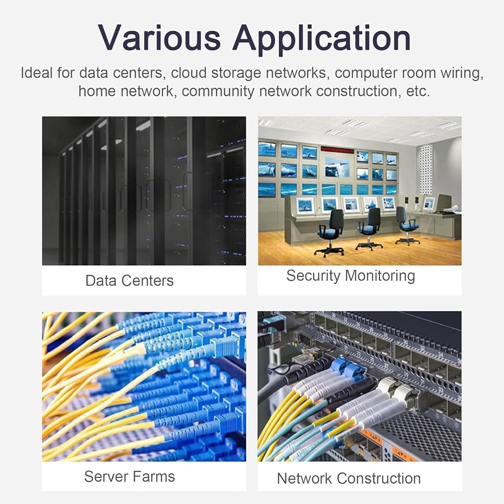 High-Speed Connectivity: Engineered for seamless high-speed data transmission, this 2m(7ft) Single mode OS2 fiber cable(9/125μm) is optimized for fast Ethernet, Fiber Channel, Gigabit Ethernet, and supports 10GBASE-L, 10GBASE-E, 1000BASE-LX, and ATM applications. It's perfect for data centers, LANs, SANs, and commercial setups, ensuring reliable video, data, and voice services.